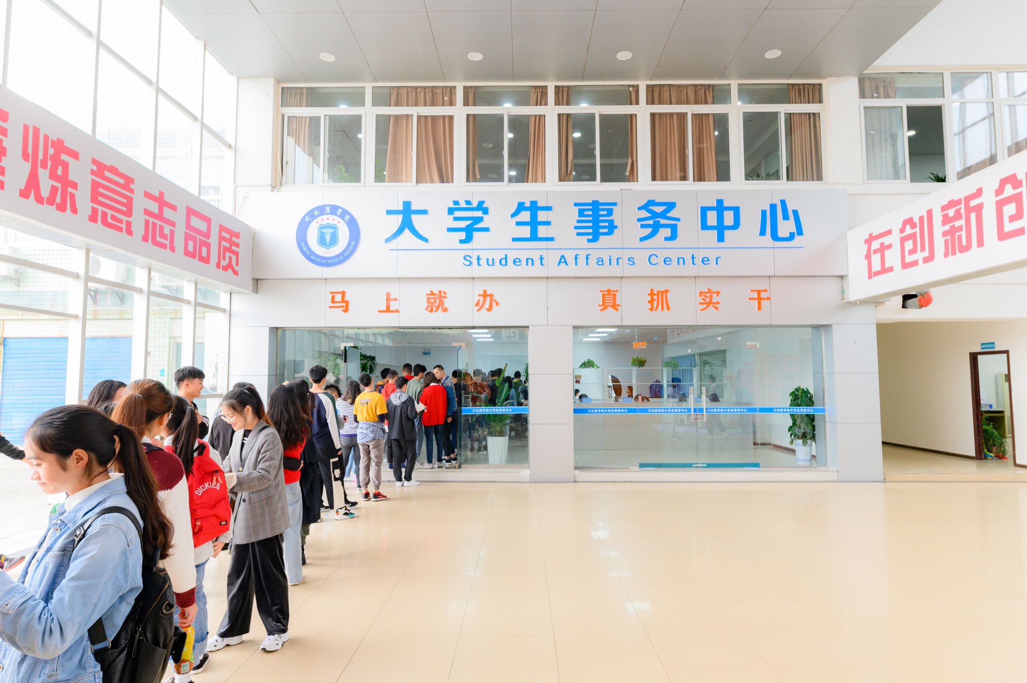 大学生事务中心位于太阳城二楼大厅左侧,可以在这里补办校园卡、学生证,还提供借用物资、打印资料、拍证件照等服务。