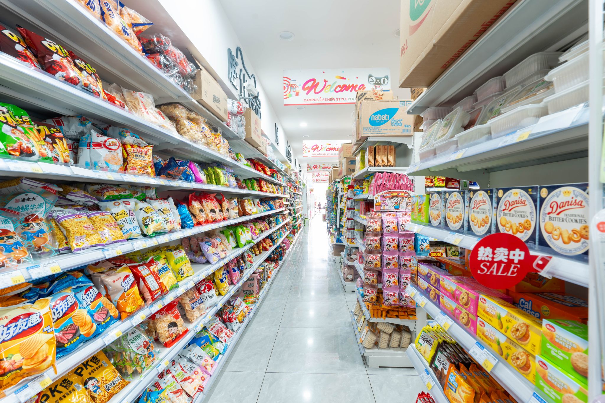 There are many small supermarkets selling snacks and daily necessities across from the school as well as fruit store selling cheap and fresh fruit in season.