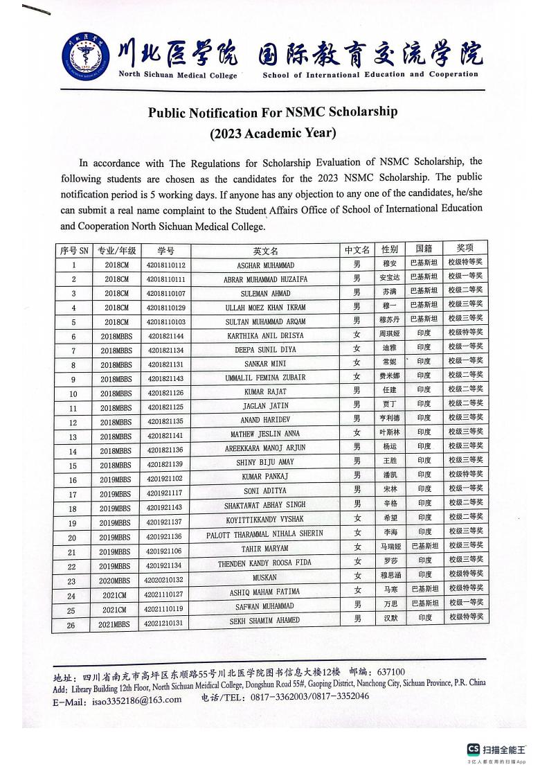 Public Notification For NSMC Scholarship (2023 Academic Year)