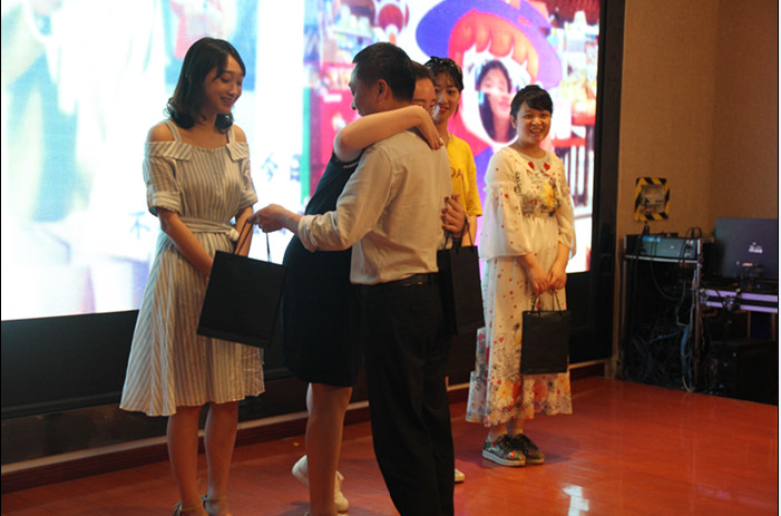 接着,活动进入高潮,现场画风突变,LED屏上播放着全体毕业生的照片,是青春洋溢的脸庞。管理学院教师为毕业生赠送毕业纪念品:一把印有管理学院院徽的雨伞,希望同学们未雨绸缪,做好一切准备,同时也表示无论同学们走到哪里,管理学院永远为大家遮风避雨;第二件纪念品是一套精致笔记本礼盒,代表着老师们希望全体毕业生即便结束了大学学习生活也要养成终生学习的习惯,活到老学到老;第三件是一封来自辅导员老师的一封信,纸短情长,诉不尽四年朝夕师生情。