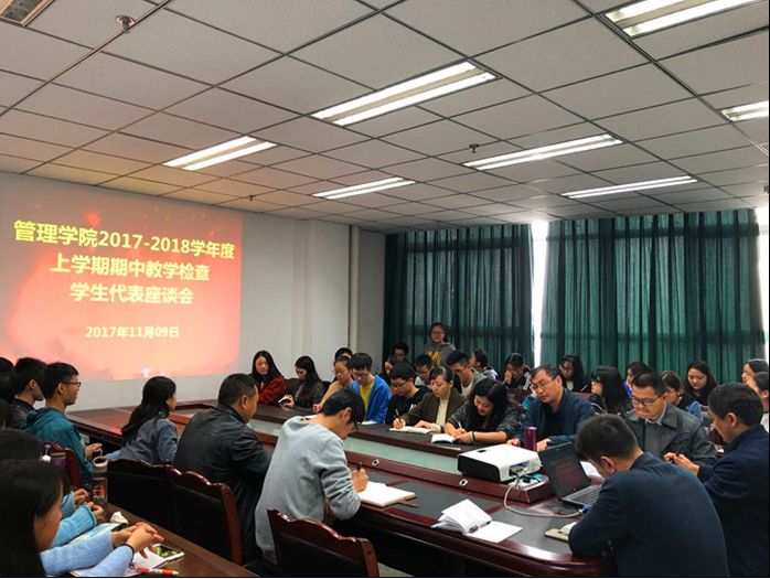 11月9日上午,我院开展了2017—2018学年上学期期中教学检查学生代表座谈会。管理学院党政负责人、各教研室主任、辅导员及各专业学生代表参加了此次会议。