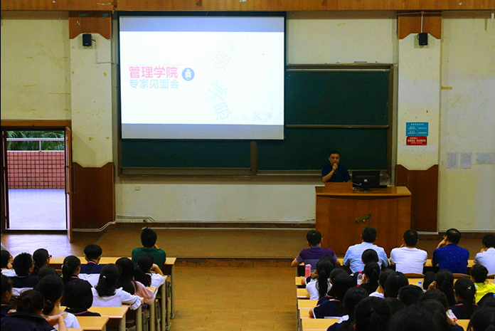 9月12日晚7点,我院2017级新生专家见面会在北楼101教室举行。会议由学院党总支副书记代成书主持,管理学院党政领导班子、各行政科室老师、各教研室主任、2017级新生班主任以及全体新生参加了本次见面会。