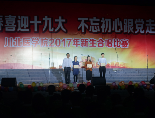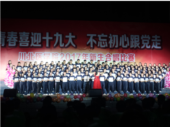 2017年9月28日晚19:00,我校在高坪校区风雨操场举行了主题为“青春喜迎十九大,不忘初心跟党走”的2017年新生合唱比赛。我院2017级合唱队积极参加比赛并凭借一曲气势磅礴的《歌唱祖国》获得一等奖。