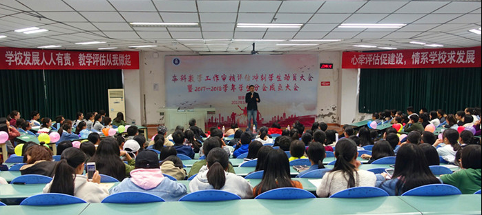 10月22日下午,我院在学校高坪校区图书信息大楼102教室召开本科教学工作审核评估冲刺学生动员大会暨2017-2018学年学生分会成立大会。管理学院党总支副书记代成书、全体辅导员、班主任及我院全体学生参加了此次会议。