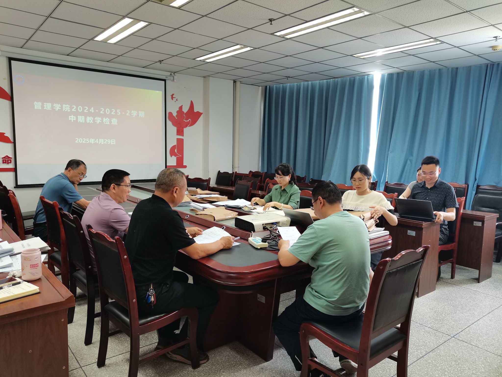为进一步提升教学质量,强化教学管理,4 月 29 日,学院开展 2024-2025 学年第二学期中期教学检查工作。此次检查由柯雄院长带队,各分管领导、教研室主任、副主任及教研室秘书积极参与,共同对学院教学工作进行全面 “体检”。