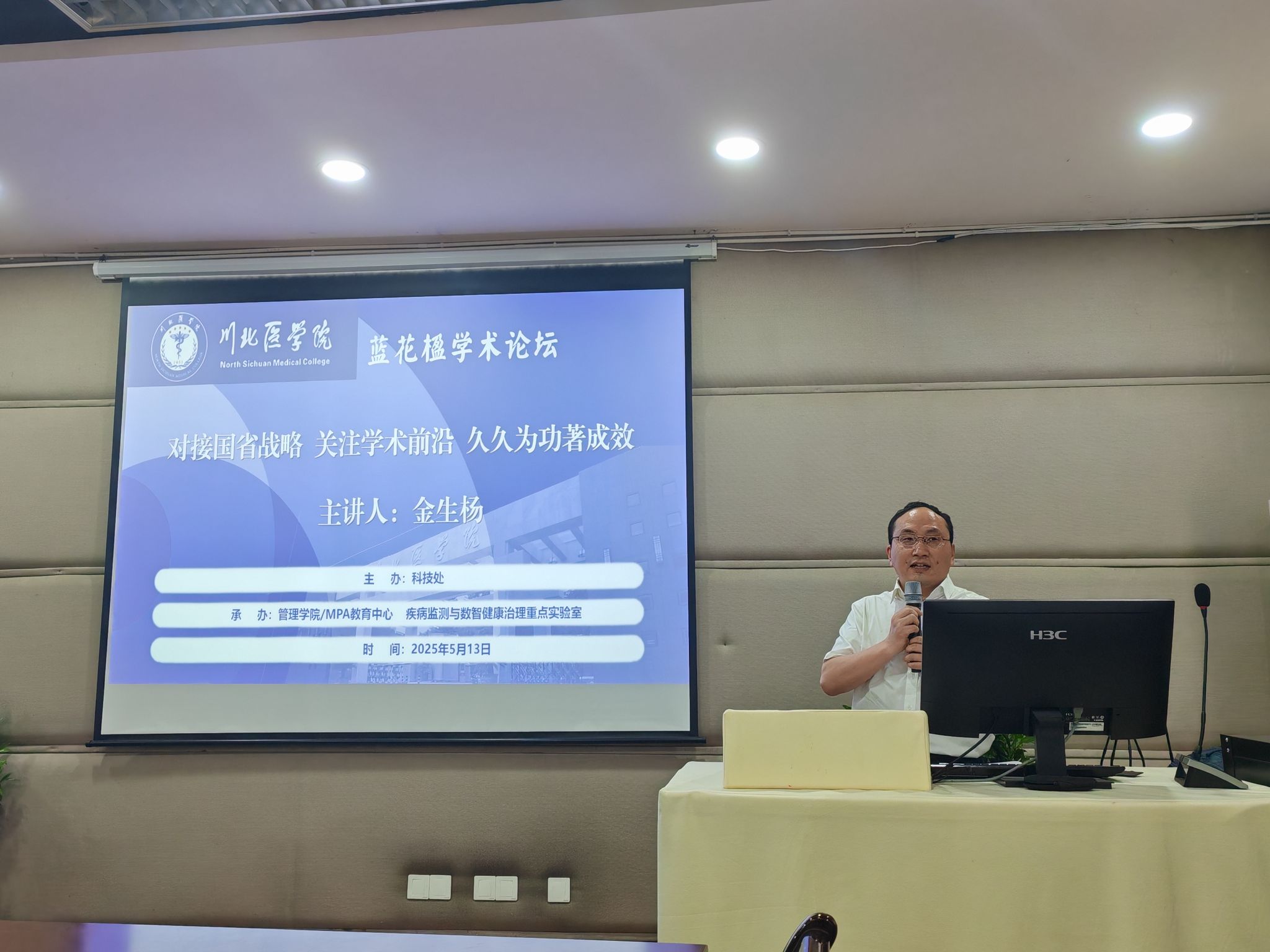 5月13日,由科技处主办,管理学院、疾病监测与数智健康治理重点实验室承办的“蓝花楹学术论坛——对接国省战略,关注学术前沿,久久为功著成效”在基础医学院与法学院学术厅举办。论坛特邀西华师范大学历史文化学院教授,中华档案文献研究院院长、区域文化研究中心负责人、蜀道研究院副院长,硕士生导师金生杨为主讲。各院系60余名科研工作者及一线教师参加此次讲座。