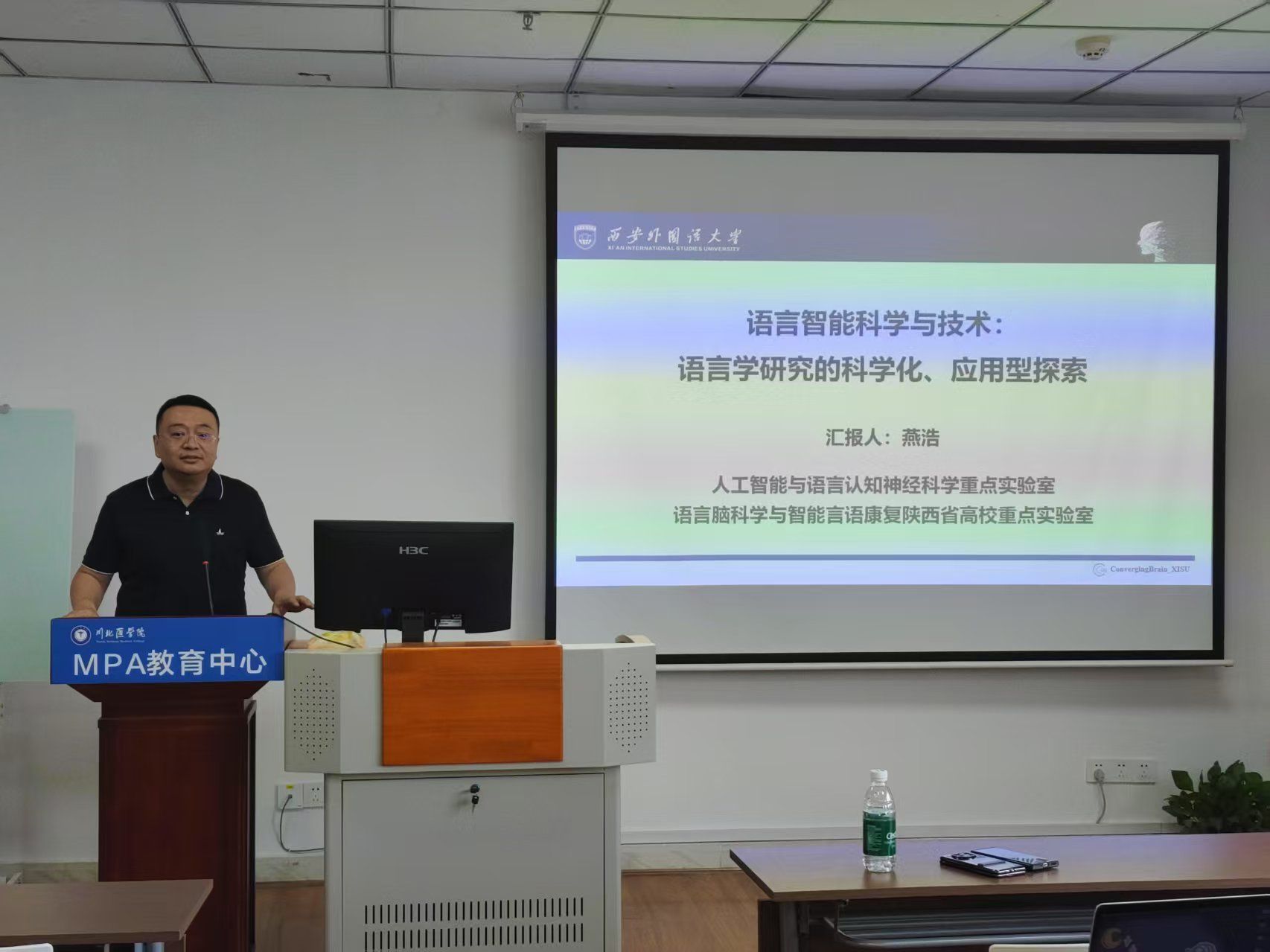 6月12日,由科技处主办,管理学院、疾病监测与数智健康治理重点实验室承办的“蓝花楹学术论坛——语言智能科学与技术:语言学研究的科学化、应用型探索”在MPA会议室举办。论坛特邀西安外国语大学“西外学者”特聘教授、博士生导师,西安外国语大学“人工智能与语言认知神经科学重点实验室”主任、“语言脑科学与智能言语康复”陕西省高校重点实验室主任燕浩为主讲。各院系60余名科研工作者及一线教师参加此次讲座。