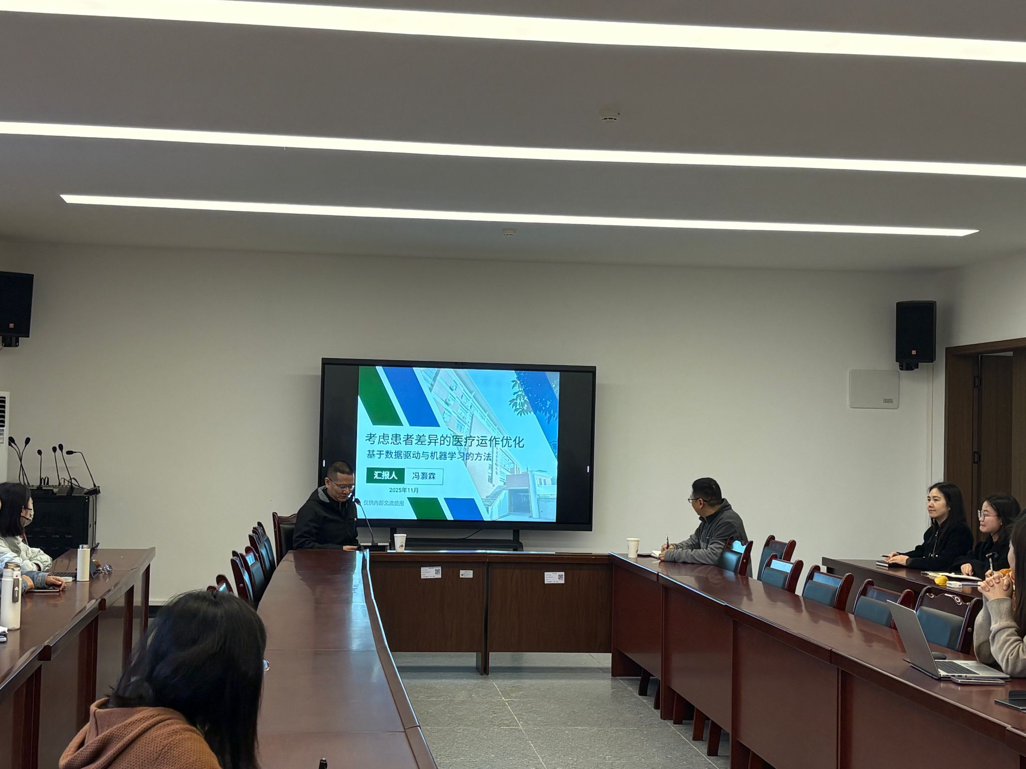 讲座期间,专家冯灏霖围绕“识别与利用患者异质性以优化医疗运作”这一核心议题,介绍了一系列结合数据驱动建模与运筹优化方法的研究工作。内容涵盖针对患者服务时长差异、就诊流程差异以及病情对专家医生介入需求差异的研究,重点探讨不确定性条件下患者异质性的建模方法与决策优化策略。通过以上研究案例,讲座阐释了一个总体思路:在医疗运作管理中,患者异质性不应被视为噪声,而应被系统性地识别、建模并加以利用。基于机器学习与运筹优化的融合框架,可为医疗系统的运作效率提升与患者体验改善提供有力的决策支持。随后,耐心解答了在场科研工作者提出的关于研究设计、分组依据、数据来源、就诊时间界定等方面的疑问。
