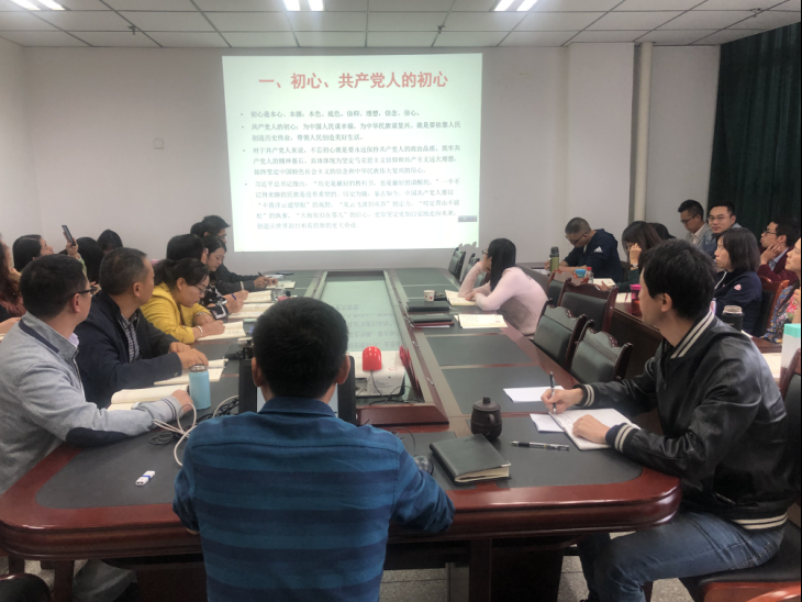 教工党支部书记张德成讲授题为《不忘初心使命,做优秀高校教师》的党课。介绍“不忘初心,牢记使命”主题教育的背景、意义和要求,分享作为高校教师,如何来准确把握初心和使命的方法。