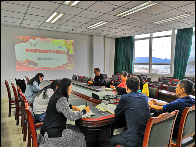 9月25日下午,管理学院在学校高坪校区图书信息楼8楼会议室召开工作推进会,落实学校关于基层党建工作新要求,并对后期党建工作重点任务进行安排部署。总支委员、教工党支部委员、学生党支部委员参加了会议,会议由管理学院党总支副书记代成书主持。