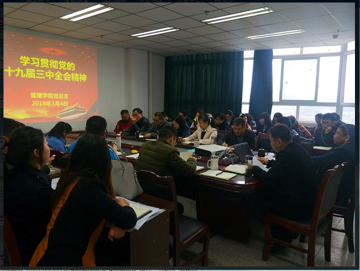 3月4日,管理学院党总支教工党支部在学校高坪校区图书信息楼管理学院会议室召开学习贯彻党的十九届三中全会精神会议,会议由管理学院党总支副书记代成书主持,我院全体教师参加了会议。