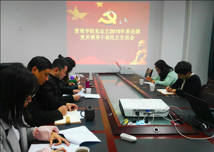 根据学校党委总体安排和部署,1月4日上午管理学院党总支在学校高坪校区图书信息楼八楼管理学院会议室组织召开系处级党员领导干部民主生活会,管理学院党总支全体处级及以上干部参加会议,学校党委副书记、纪委书记朱燕萍,纪委胡婧婷到会指导。会议由管理学院党总支副书记代成书主持。