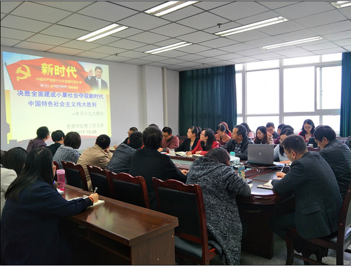 10月24日上午,党的十九大胜利闭幕,为深入学习和贯彻落实党的十九大精神,当日下午,我院教工党支部在高坪校区图书信息楼8楼会议室组织召开十九大报告学习会,我院全体教师党员参加了会议,会议由党总支副书记代成书主持。