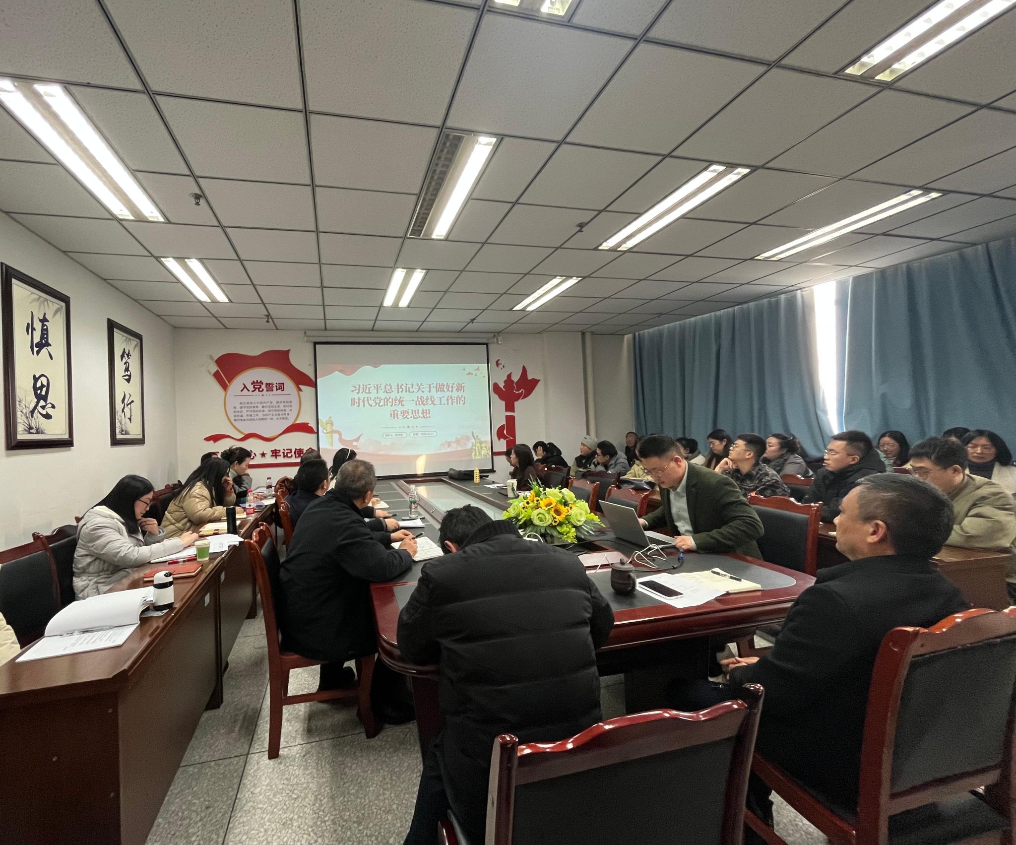 12月17日下午,管理学院党总支在高坪校区图信楼八楼会议室召开2024年第17次理论学习中心组集中学习(扩大)会议。会议由管理学院党总支书记潘尔春主持。会议围绕“十三个坚持”系统学习习近平总书记关于党的建设的重要思想,围绕“十二个必须”深入学习习近平总书记关于做好新时代党的统一战线工作的重要思想。