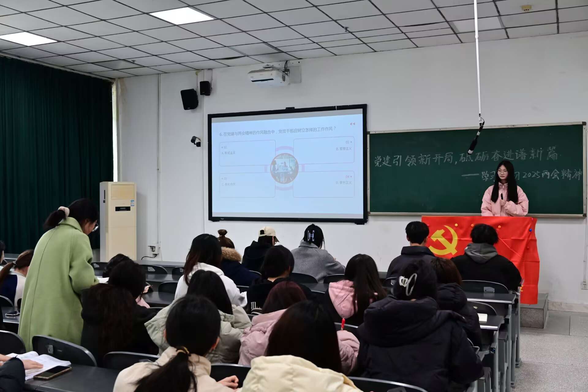 为深入学习贯彻习近平总书记重要讲话精神和全国两会精神,3月18日,管理学院党总支在高坪校区图信楼103教室开展“党建引领开新局,砥砺奋进谱新篇——学习贯彻2025两会精神”专题学习会,学院全体在校学生党员以及部分入党积极分子参与。