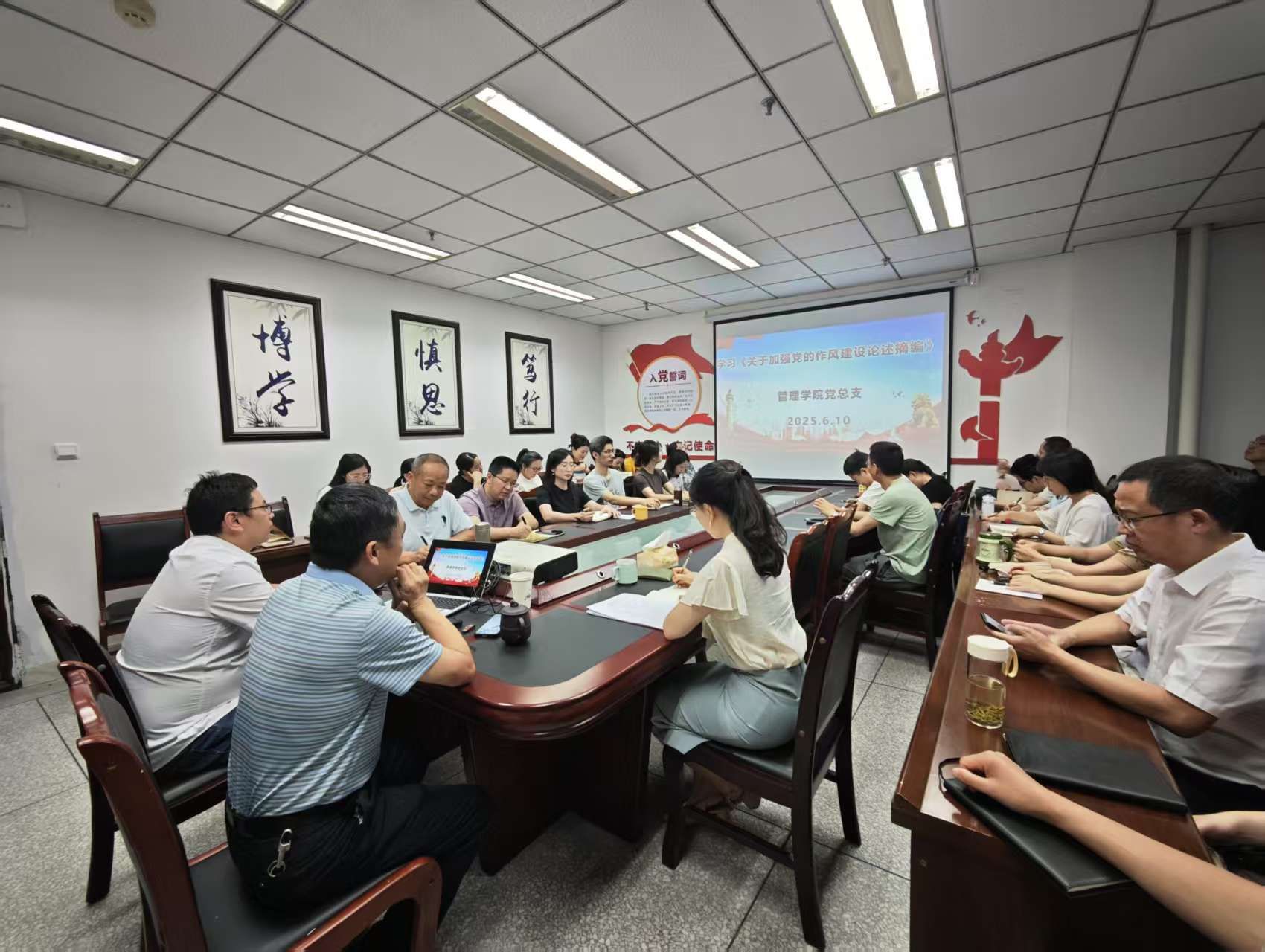 会上,管理学院潘尔春教授围绕《习近平关于加强党的作风建设论述摘编》中第一章“党的作风关系人心向背,决定党和国家事业成败”讲党课,引导全体教职工准确把握新时代加强党的作风建设的政治意义与实践要求;管理学院副院长胡帮勇领学教育部党组书记、部长怀进鹏重要文章《把教育强国的宏伟蓝图变为美好现实》,他结合学院人才培养、专业建设、课程改革等相关工作,探讨如何将教育强国的战略目标转化为切实可行的教育教学实践路径。