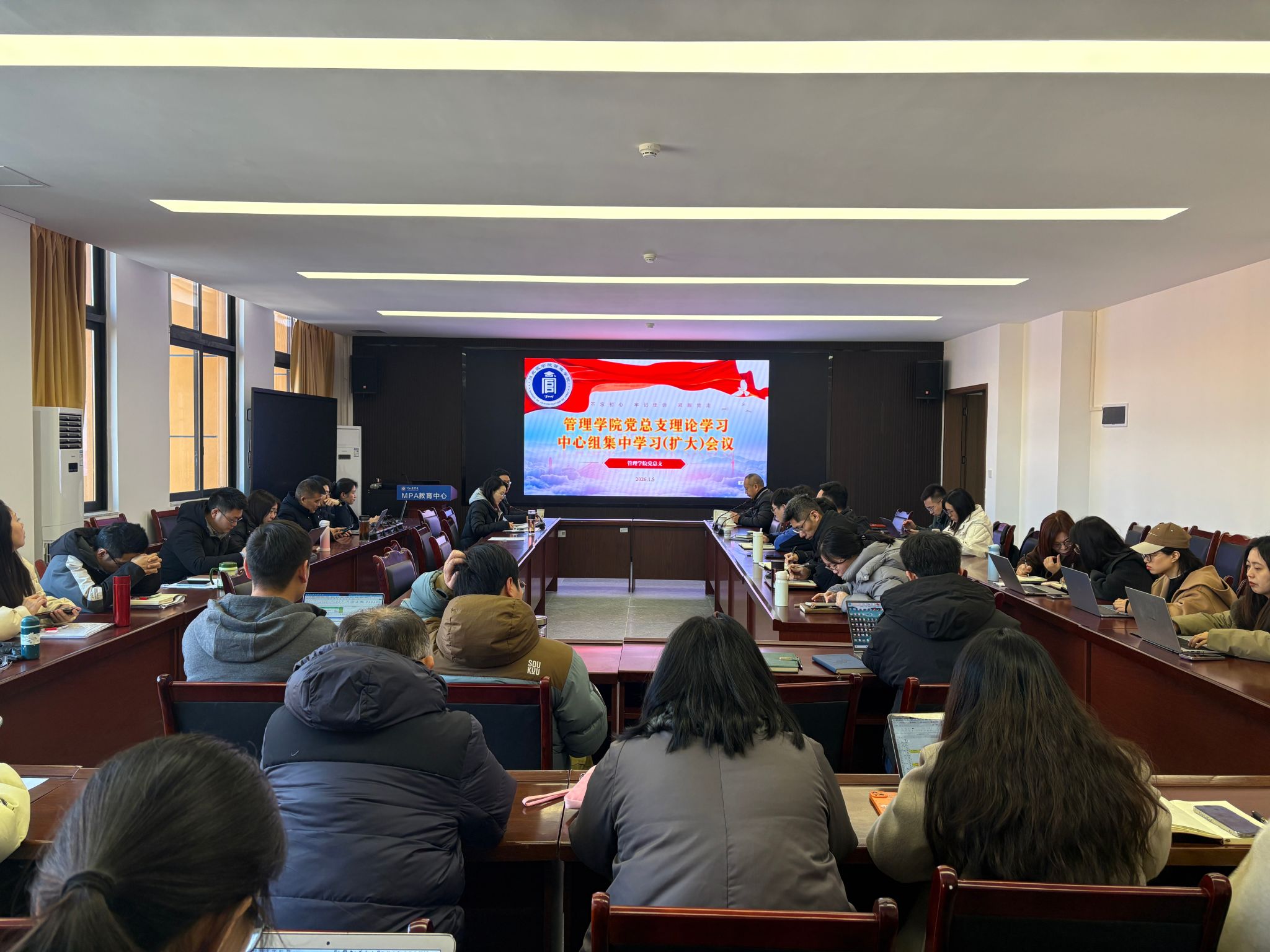 为深入学习贯彻习近平新时代中国特色社会主义思想,准确把握新质生产力发展要求与中央经济工作会议精神,1月5日下午,管理学院召开理论学习中心组集中学习(扩大)会议。学院党总支副书记敬媛媛主持会议,学院全体教职工参加。