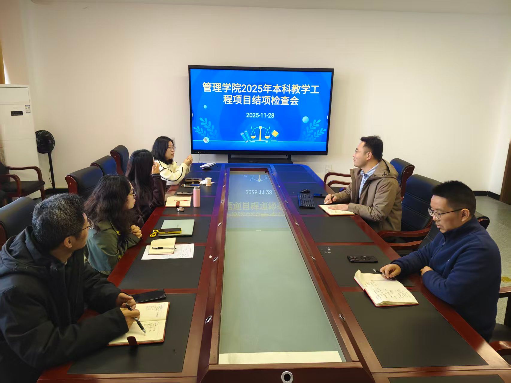 为贯彻落实学校《关于开展2025年本科教学工程项目结项检查和评优工作的通知》要求,确保项目建设质量与成效,管理学院于2025年11月28日下午组织召开院内评审会,对各本科教学工程项目进行年度考核与评议。会议由学院教学副院长胡帮勇主持,各教研室主任参加会议。