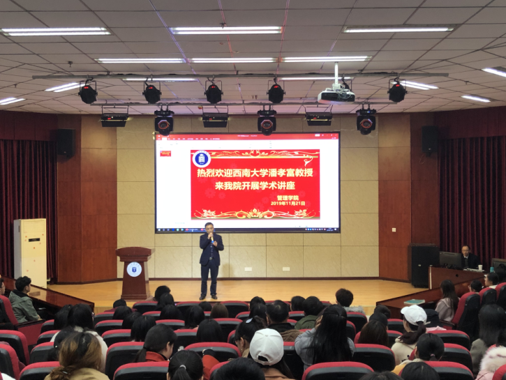 为拓展学生社会工作实践理论知识,我院邀请到了西南大学文化与社会发展学院院长,博士生导师潘孝富教授,以“社会工作者人际交往的心理策略”为主题于11月21日下午在图信楼407开展学术讲座。管理学院院长潘尔春教授主持了本次讲座。