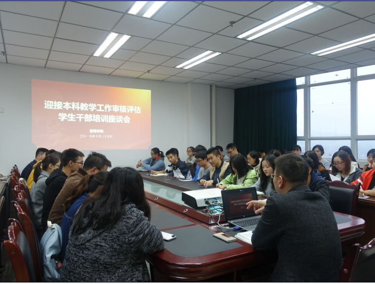 为更好地迎接审核评估,2017年10月25日下午,我院于图书信息大楼8楼会议室开展了迎接本科教学工作审核评估学生干部培训座谈会。学院党总支副书记代成书、学生科肖霞、欧阳明月老师以及学院学生会干部、学生党员参加了此次座谈会。
