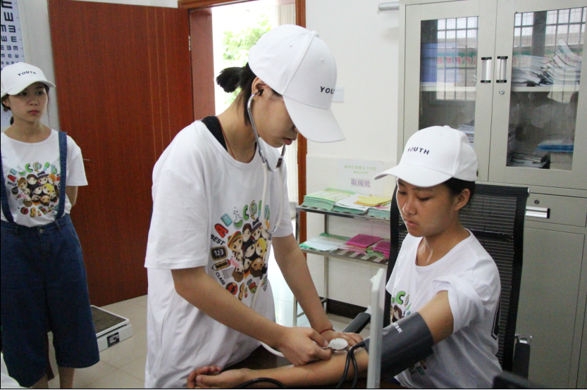 培训讲座上,王院长耐心为队员讲解了血压计、血糖仪的使用方法及使用误区,并叮嘱大家在测血压前需要休息五分钟、检查水银柱、袖带戴于肘上三厘米等注意事项并带领队员到诊断室进行实际操作,安排卫生院医护人员现场指导。培训结束后,王院长就基层乡镇医院现状为队员讲解交流。他指出了医疗卫生事业的基层人才难以招揽、留住、培育的问题,直言基层医院设备匮乏,设备人员匮乏,卫生站占用大量卫生院的资源,影响了卫生院的运行等现状。交流会的最后,王院长语重心长地讲道:在基层,临床经验技术、耐心、热情服务是扎根基层的关键,未来,我们应该因地制宜地与老百姓打交道。“能吃药,就不打针;能打针,就不输液” 尽量以最少的消费治好病人,耐心和病人分享医疗保健常识是他和乡民们的相处之道。