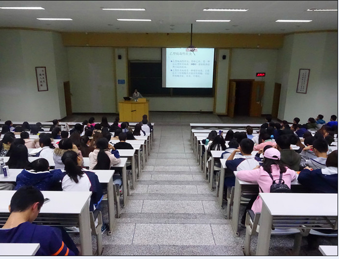 为关爱学生的健康生活,提高健康意识,11月10日晚七点,我院在南五教室举办了健康知识讲座,我校附属医院传染科医生孙辉老师主讲,我院全体学生参加了此次活动。