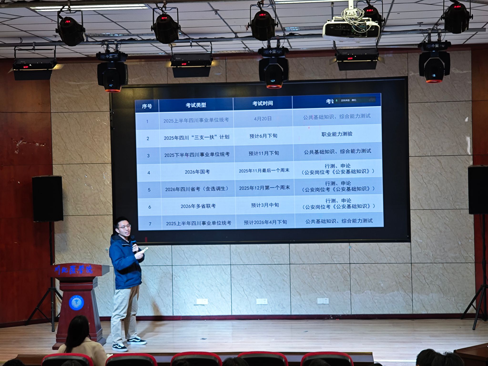为提升学生就业竞争力,3月31日下午,管理学院在图信楼407举办"职点迷津"求职能力培训讲座。活动特邀西南财经大学公共管理学院任旭林教授及四川新涯上岸教育咨询有限责任公司负责人刘海波担任主讲,学院毕业年级学生及部分2022级学生到场聆听。