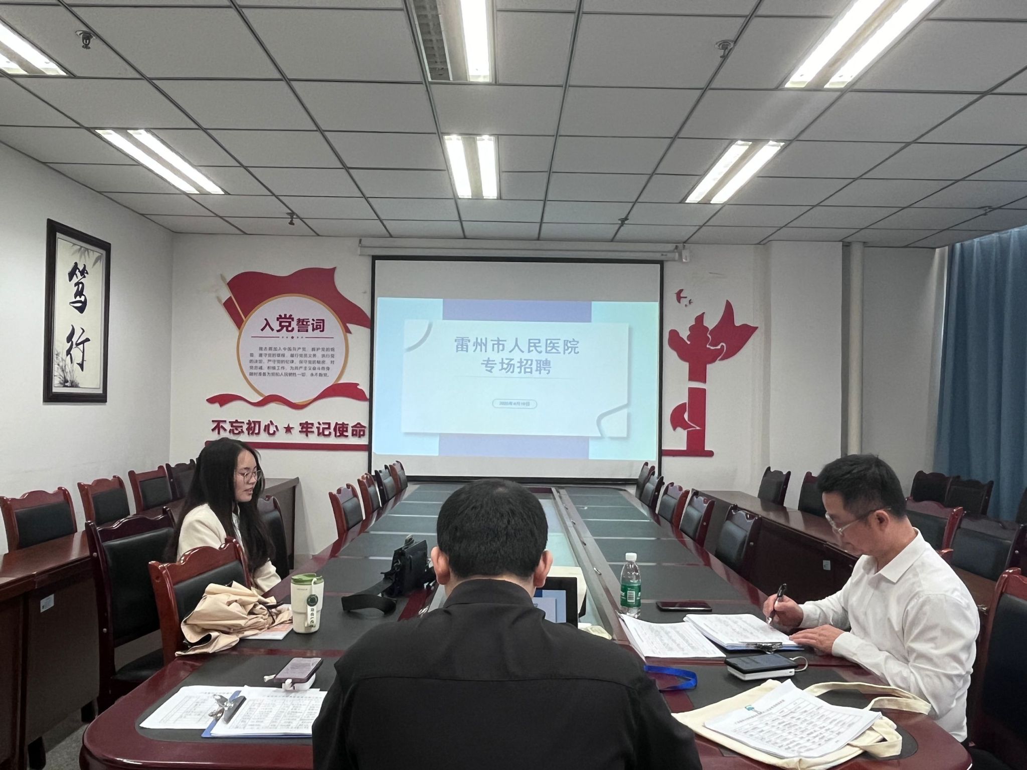 为积极响应国家推动高校学生高质量就业的号召,引导青年学生积极就业,近日,由学生工作部主办、管理学院承办的雷州市人民医院专场招聘会在图信楼八楼会议室顺利举行。