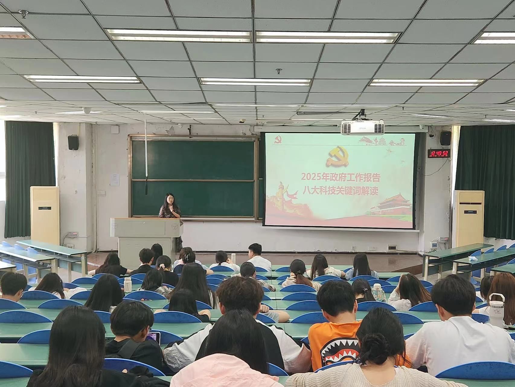 各年级辅导员以“2025年政府工作报告八大科技关键词解读”为主题开展周末形势政策教育课。课上,围绕报告内容,深入解读了未来产业、人工智能、青年人才等核心关键词,并结合实际案例阐明了科技革新的重要性,引导学生进一步提升个人素养,培养创新思维与问题解决能力,积极投身科技创新领域。