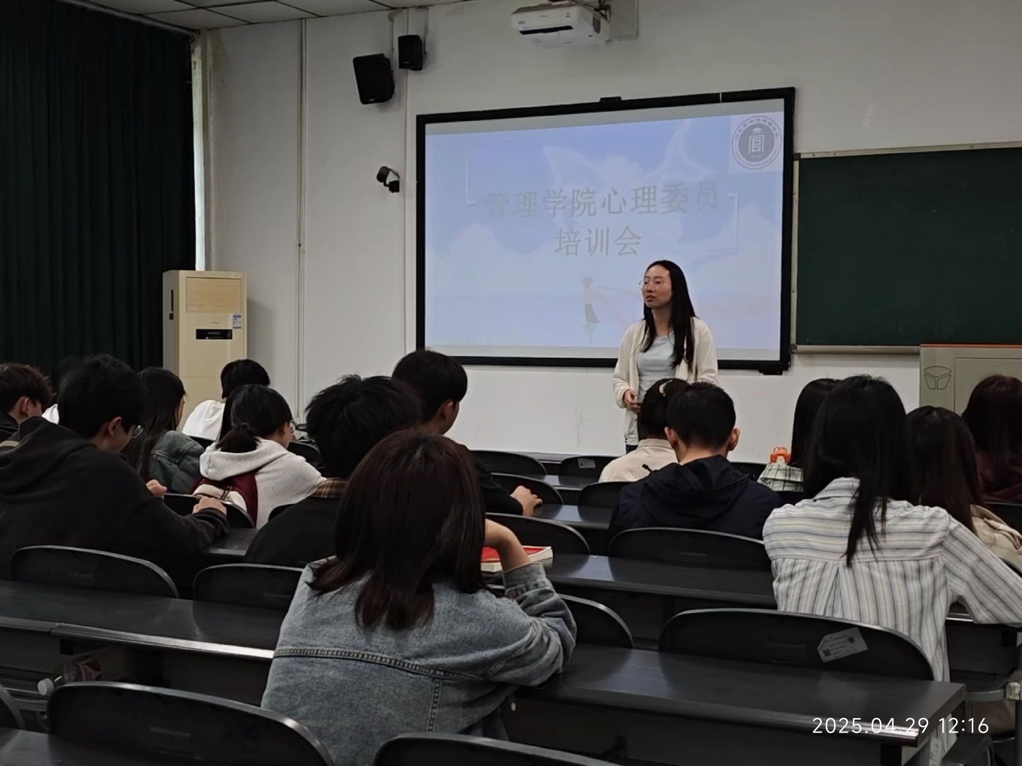 为进一步加强学院心理健康工作队伍建设,提升学院心理委员的危机识别与朋辈互助能力,管理学院于2025年4月29日下午,在图信楼103教室举办心理委员专题培训会。全院26名心理委员参加会议。