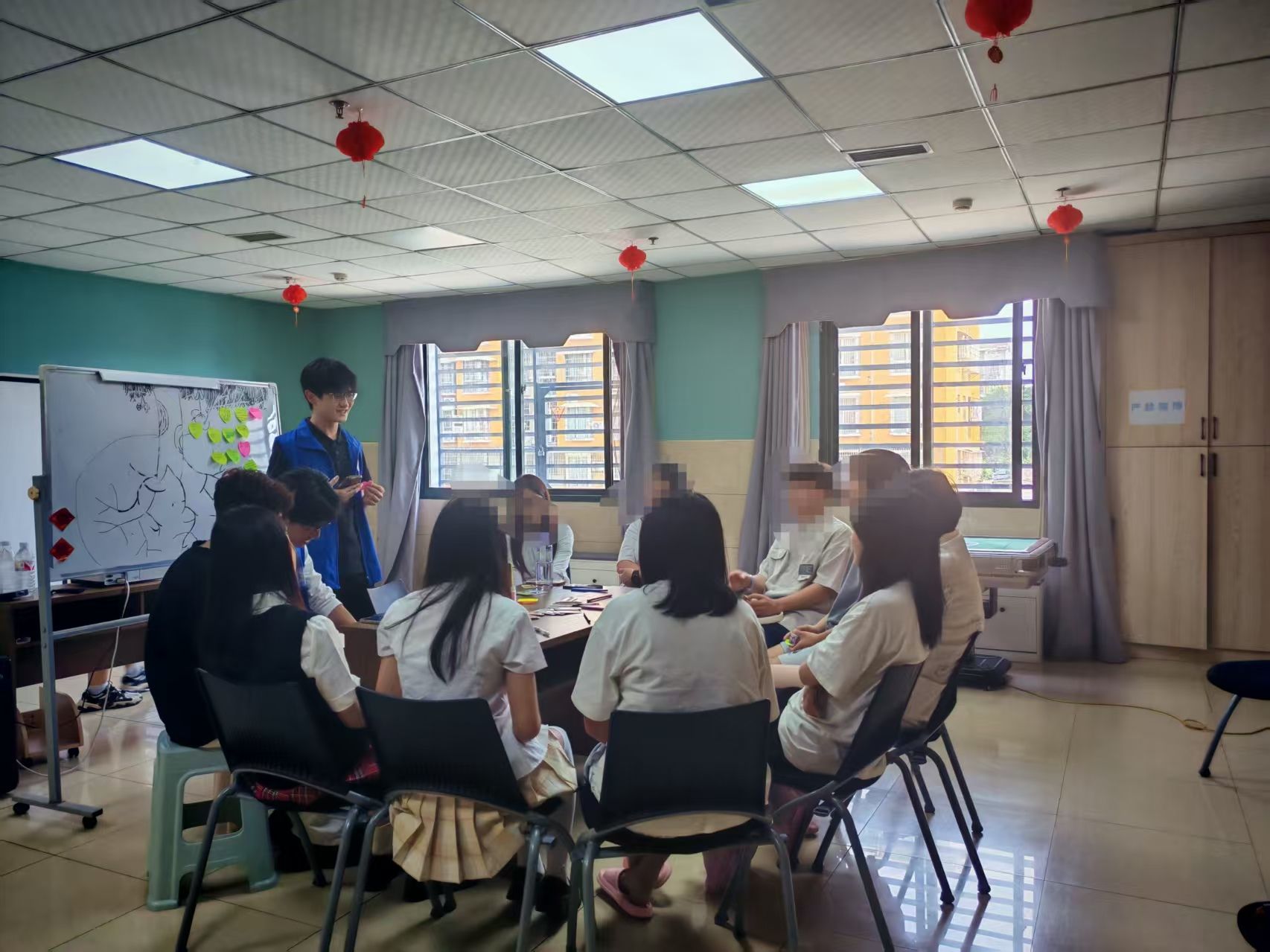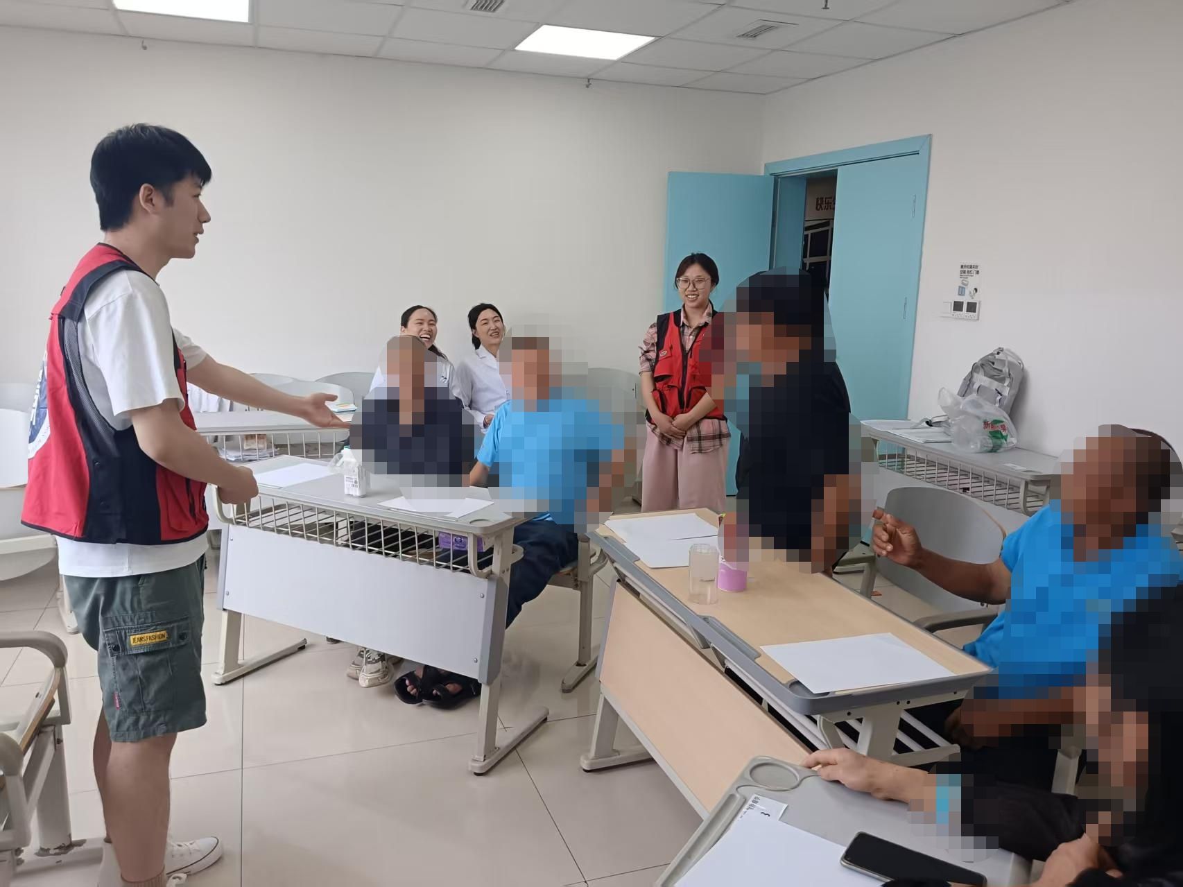 见习过程中,学生分组分别进入川北医学院附属医院老年科、肿瘤科、康复科以及身心医院精神男科和儿少科开展服务工作。同学们深入病房了解患者们的需求和问题后,针对性地进行了防跌倒安全知识和医保政策宣传,向患者普及生活安全与政策信息,并在医务人员的指导和协助下开展了基础康复训练服务及精神疗愈小组工作。此外,还开展了陪诊、资源链接等服务,以缓解患者们由生理、心理、经济等因素所引起的孤独感和焦虑情绪。