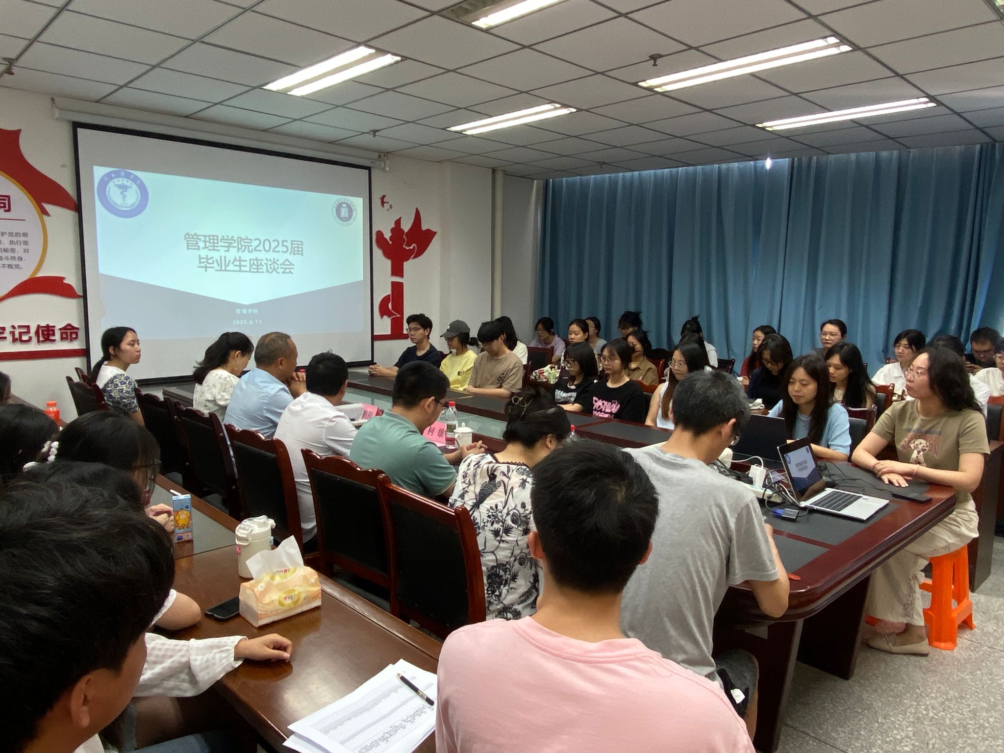 为精准优化育人体系,构建师生共成长的育人环境,6月11日上午,管理学院在图信楼八楼会议室举办毕业生座谈会。学院领导班子全体成员、各教研室负责人与毕业生代表齐聚一堂,共叙情谊,畅谈发展。