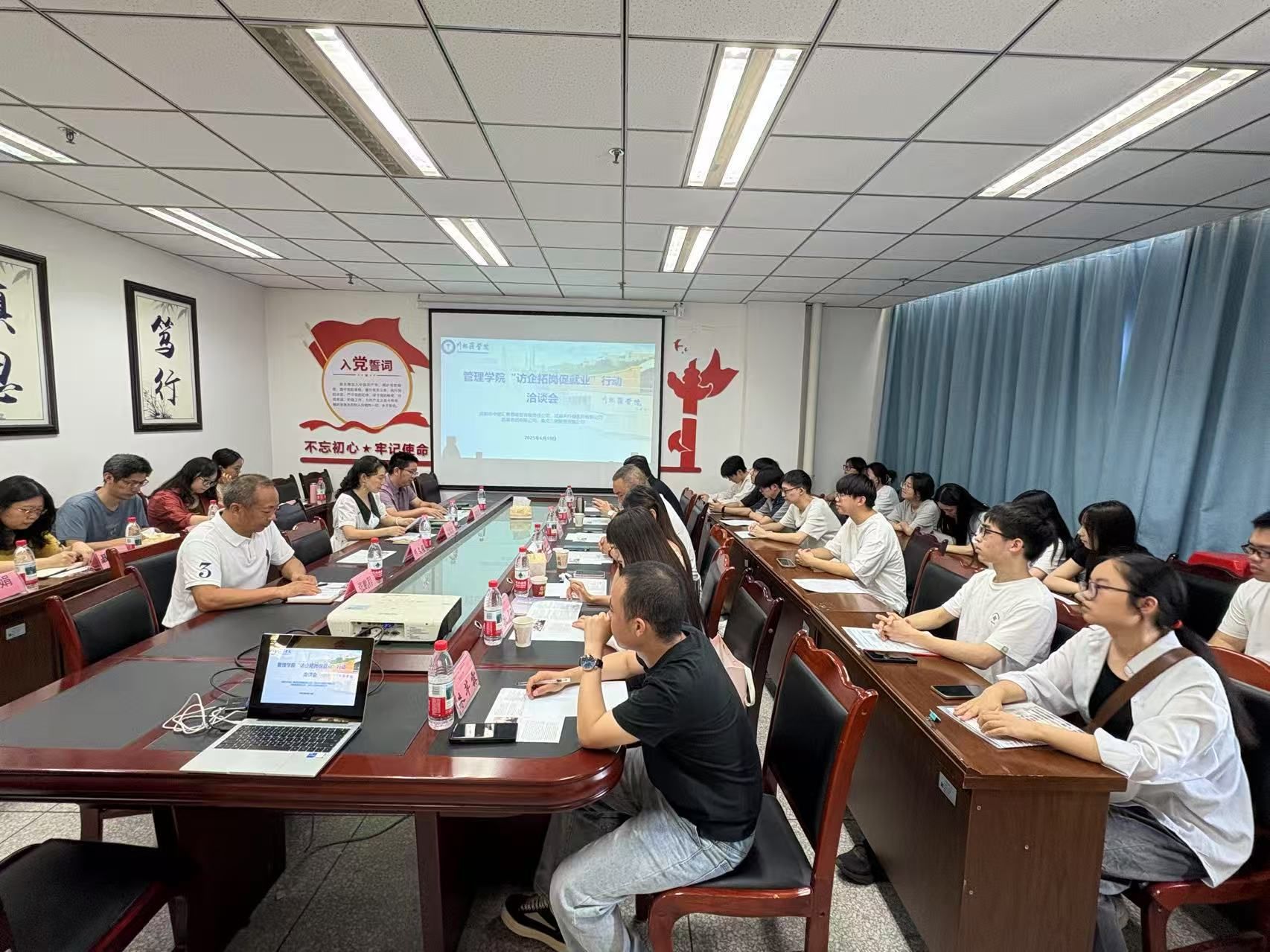 为深入贯彻落实党中央、国务院关于高校毕业生就业工作的决策部署,精准对接企业用人需求,管理学院于6月19日上午10点在图信楼八楼会议室举办了“访企拓岗促就业”洽谈会。会议由管理学院党总支副书记敬媛媛主持,学院领导班子成员、各专业负责人、辅导员及毕业年级学生代表参加,同成都中能汇善德商贸、成都天行健医药、超星集团等4家企业代表进行了深入交流。