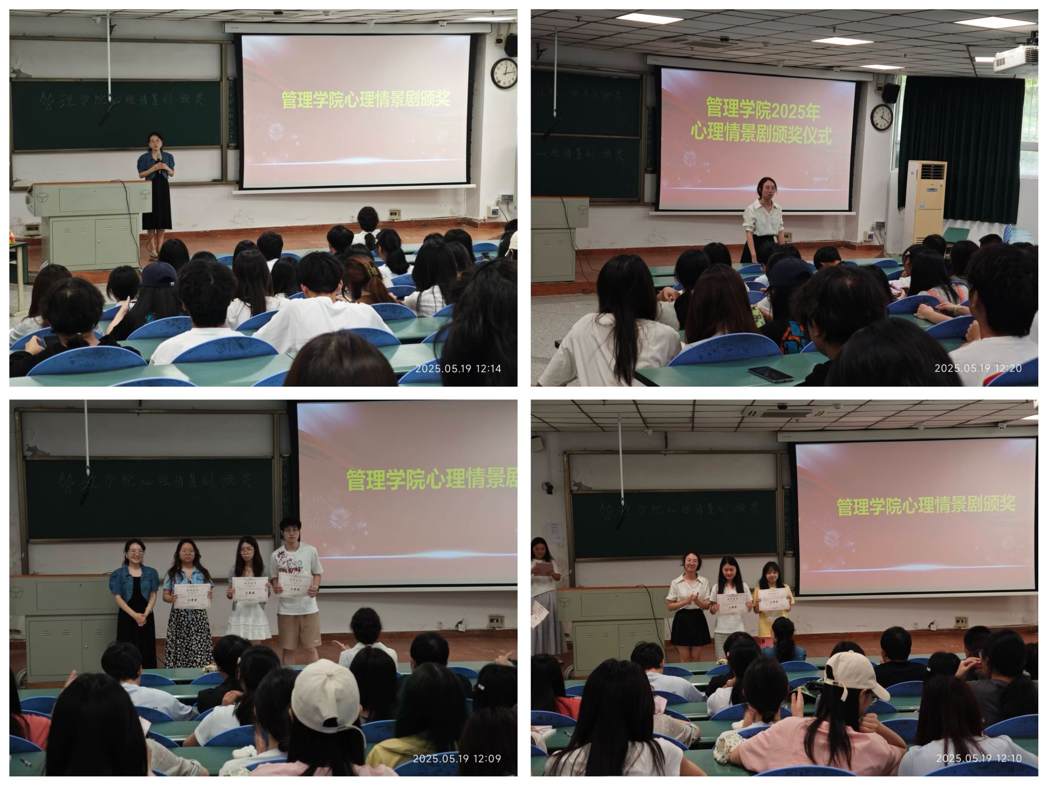 本次活动以“聚焦心灵,绽放青春”为主题,吸引了来自各年级的十余支队伍参赛,通过情景剧这一创新的表现形式,生动展现了当代大学生校园生活成长中的心理困惑与自我突破。经过激烈角逐,2024级信息管理与信息系统专业拍摄的《青春拾暖》获得了一等奖,《影子之外》、《那个可爱的老师》获二等奖,《风筝线》、《破茧》、《拉勾的勇气》获三等奖。敬媛媛在颁奖仪式中强调,心理健康是成长成才的基石,希望所有的心理委员都能协助学院开展好心理健康工作,让学院的心理关怀渗透到同学们生活的方方面面。