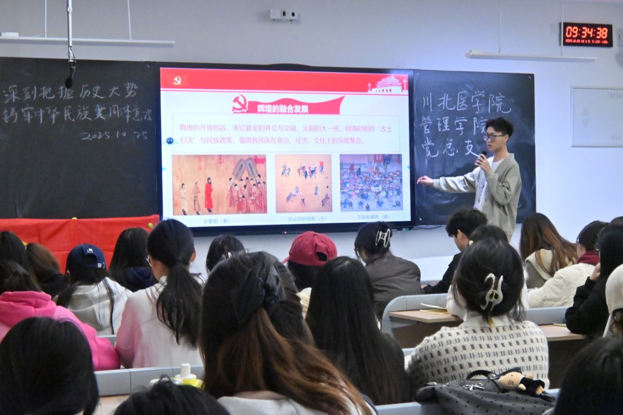 10月25日下午,管理学院党总支在博济楼东106教室举办"把握中华民族历史发展大势,铸牢中华民族共同体意识"主题学习会。学院全体在校学生党员及入党积极分子代表共80余人通过专题讲座、分组研讨等形式,深入探讨新时代青年的责任担当。管理学院全体在校学生党员及部分入党积极分子代表参加了本次学习。