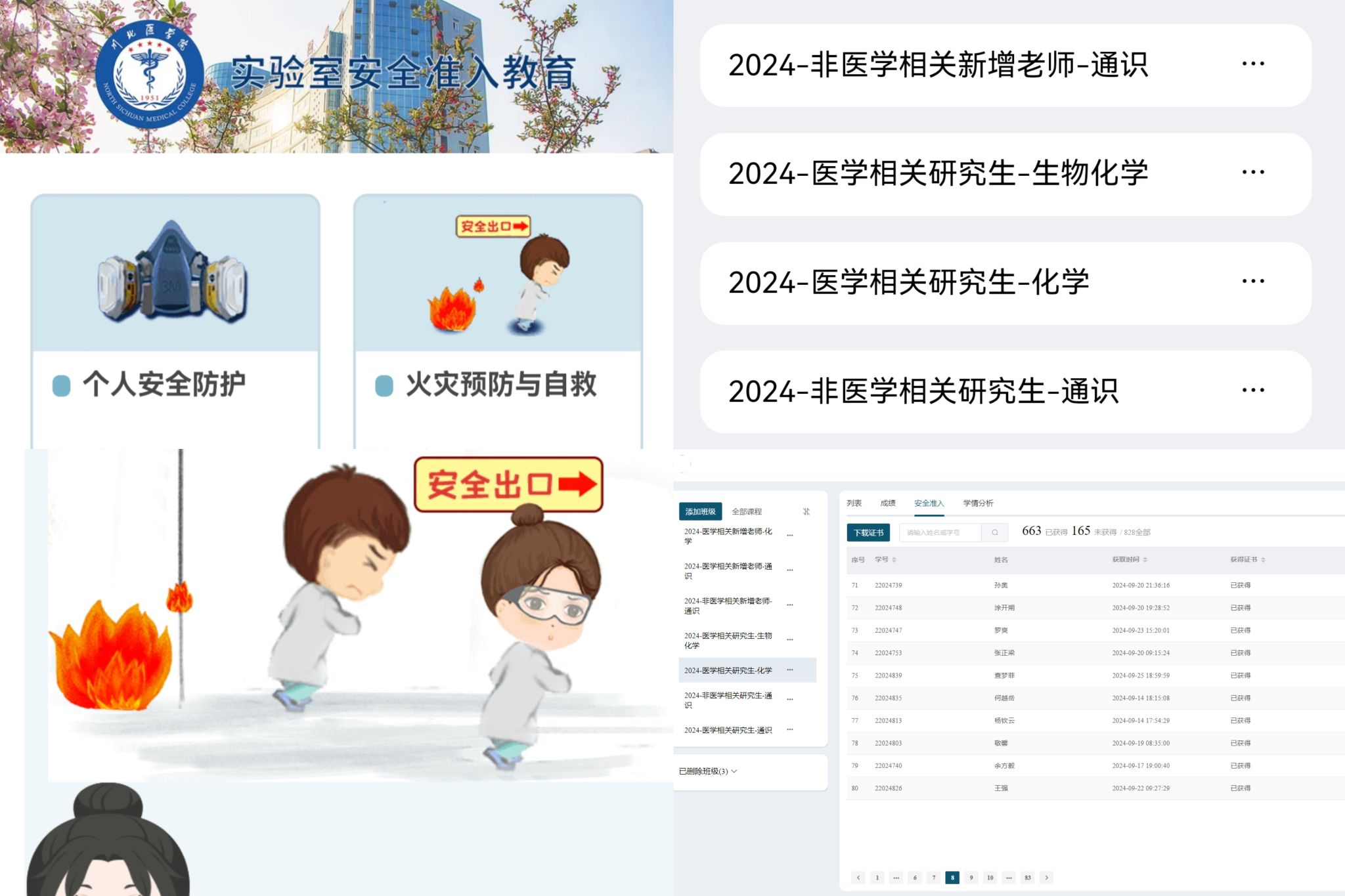 学校组织对2024级本、硕新生及学校新进实验教师共计近4000余人展开实验室准入教育,完成基础安全、化学安全和生物安全等相关课程学习并通过测试获得实验室准入证书。