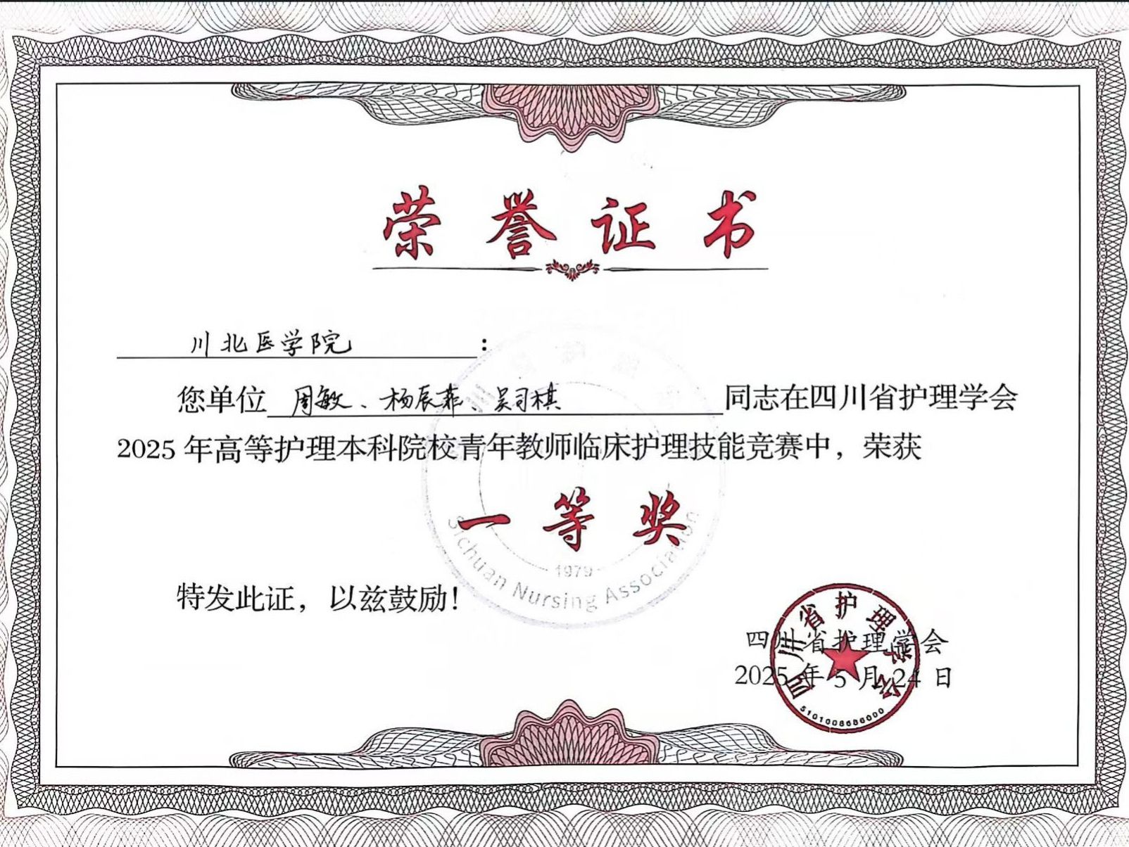 我校在四川省护理学会2025年高等护理本科院校青年教师临床护理技能大赛中荣获一等奖