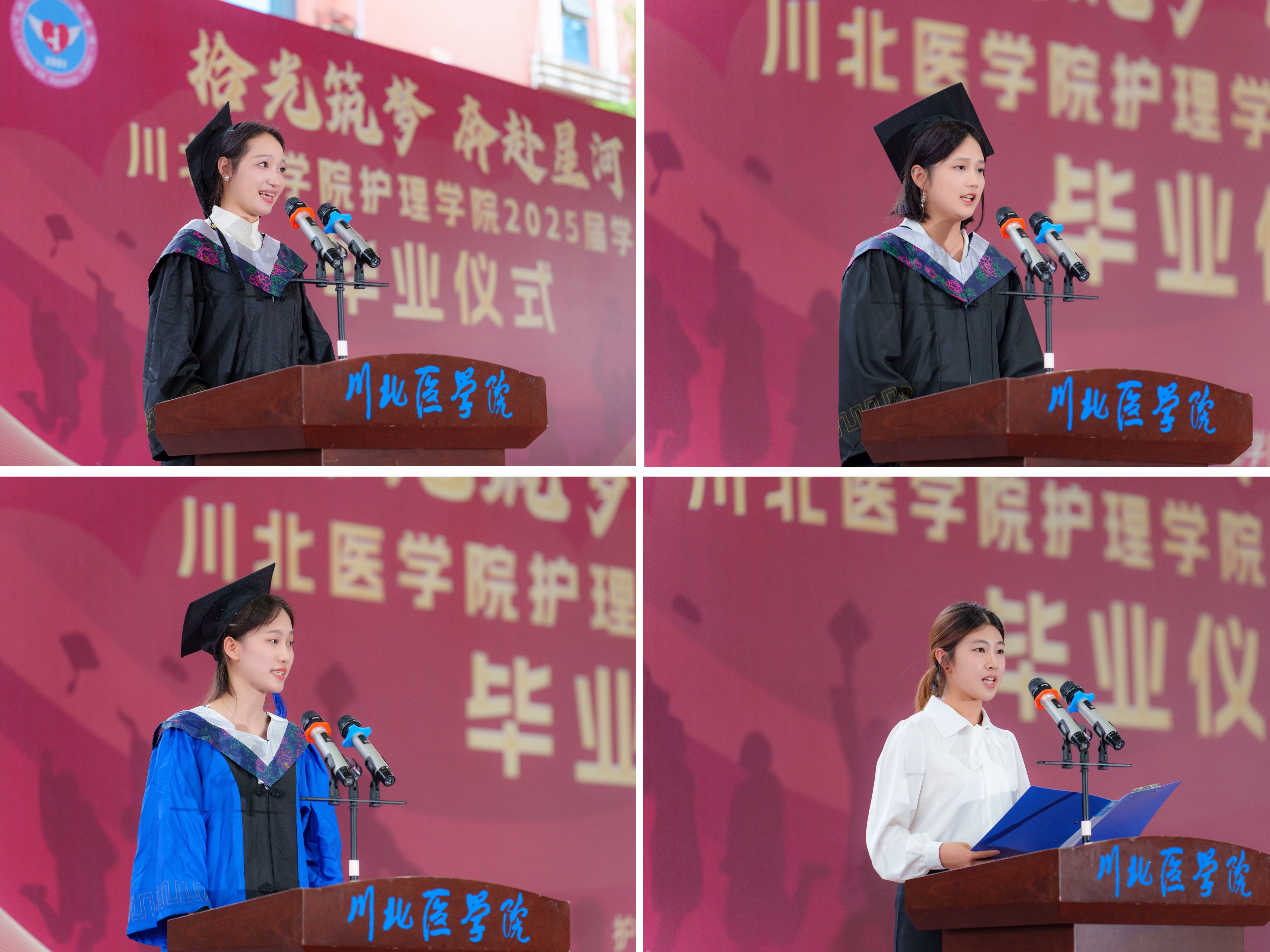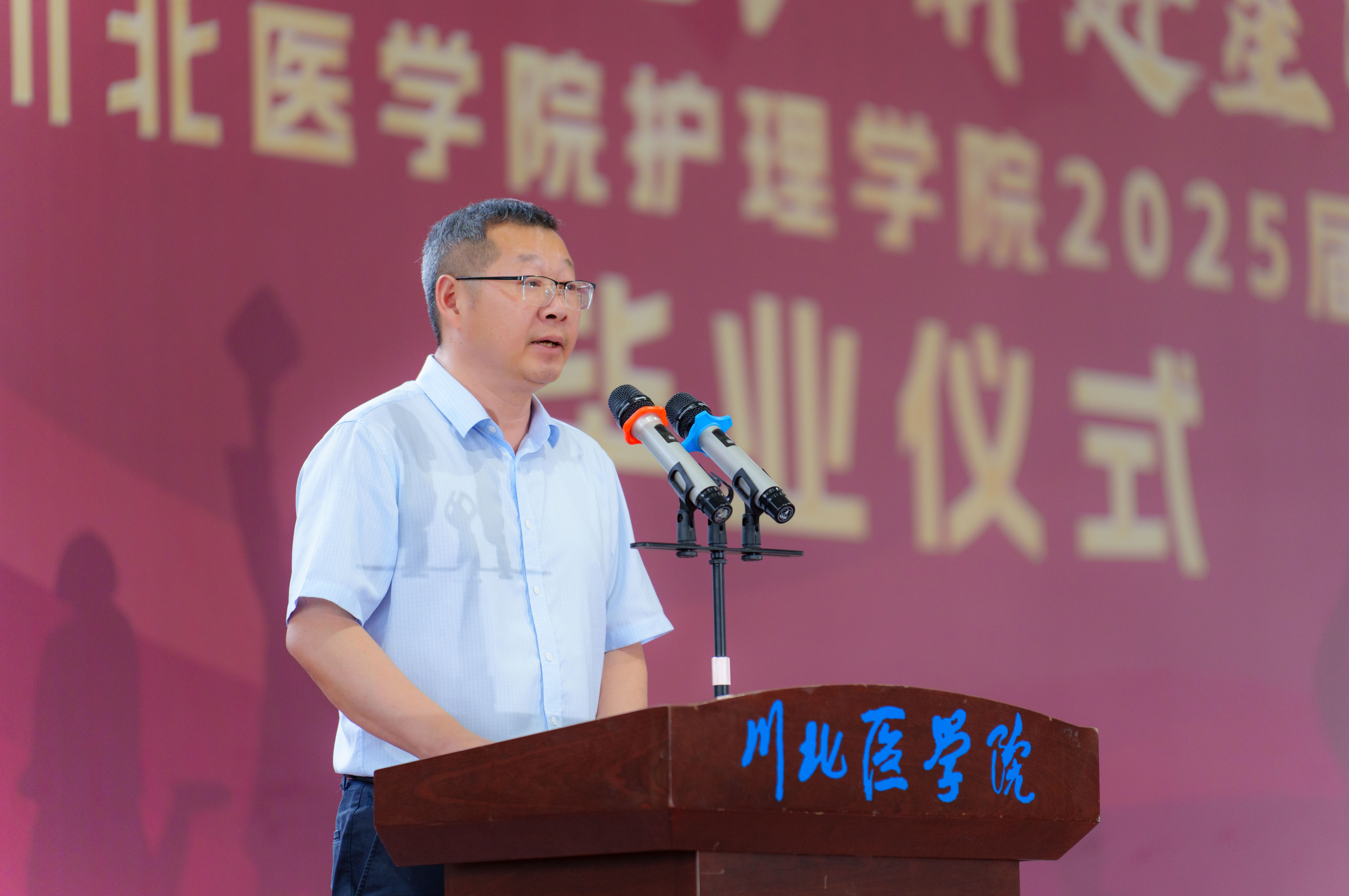 护理学院院长周洪贵深情寄语全体毕业学子。她高度肯定了同学们在校期间取得的成绩,殷切期望大家步入工作岗位后,时刻展现川北医人严谨求实、仁爱奉献的精神风貌,将“医者仁心”内化于心、外化于行,把平凡的工作当作崇高的事业去追求,用专业和爱心谱写灿烂的人生新篇。