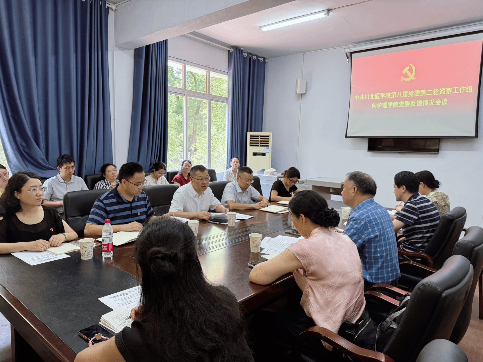 根据学校党委统一部署,2025年7月4日,川北医学院第八届党委第二轮巡察工作组巡察护理学院党委情况反馈会召开。学校党委副书记、工会主席、巡察工作领导小组副组长黄平,学校党委巡察工作领导小组成员、巡察办主任陈毅君,学校党委第二轮巡察组全体成员,护理学院党政领导班子成员、党委委员、副科级以上干部、支部书记、教研室(实验中心)负责人、师生代表参加会议。