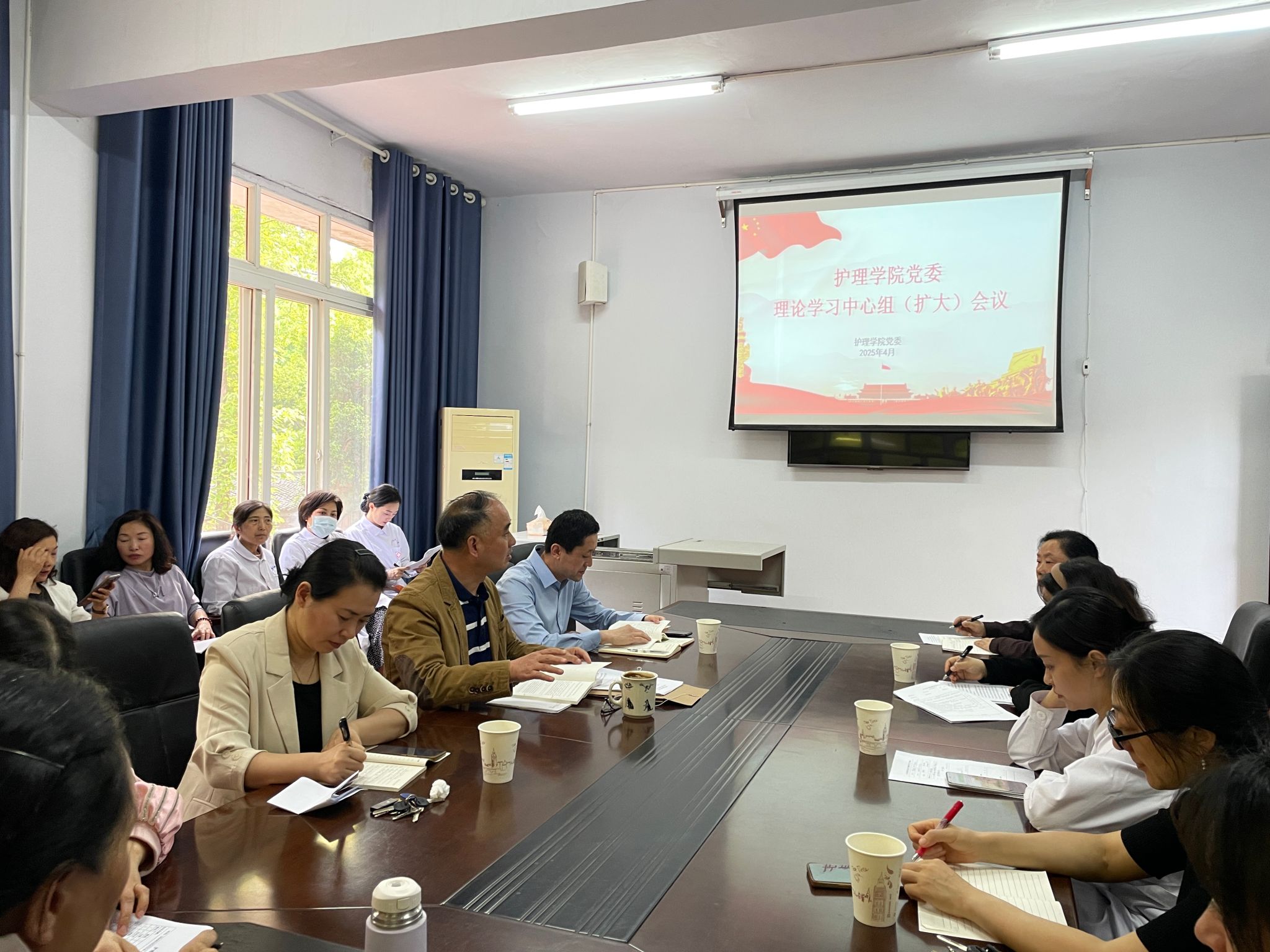 4月27日下午,护理学院党委在顺庆校区思源楼二楼会议室召开理论学习中心组(扩大)会议。理论学习中心组成员、党支部书记、教职工参加学习,会议由护理学院党委书记马静主持。
