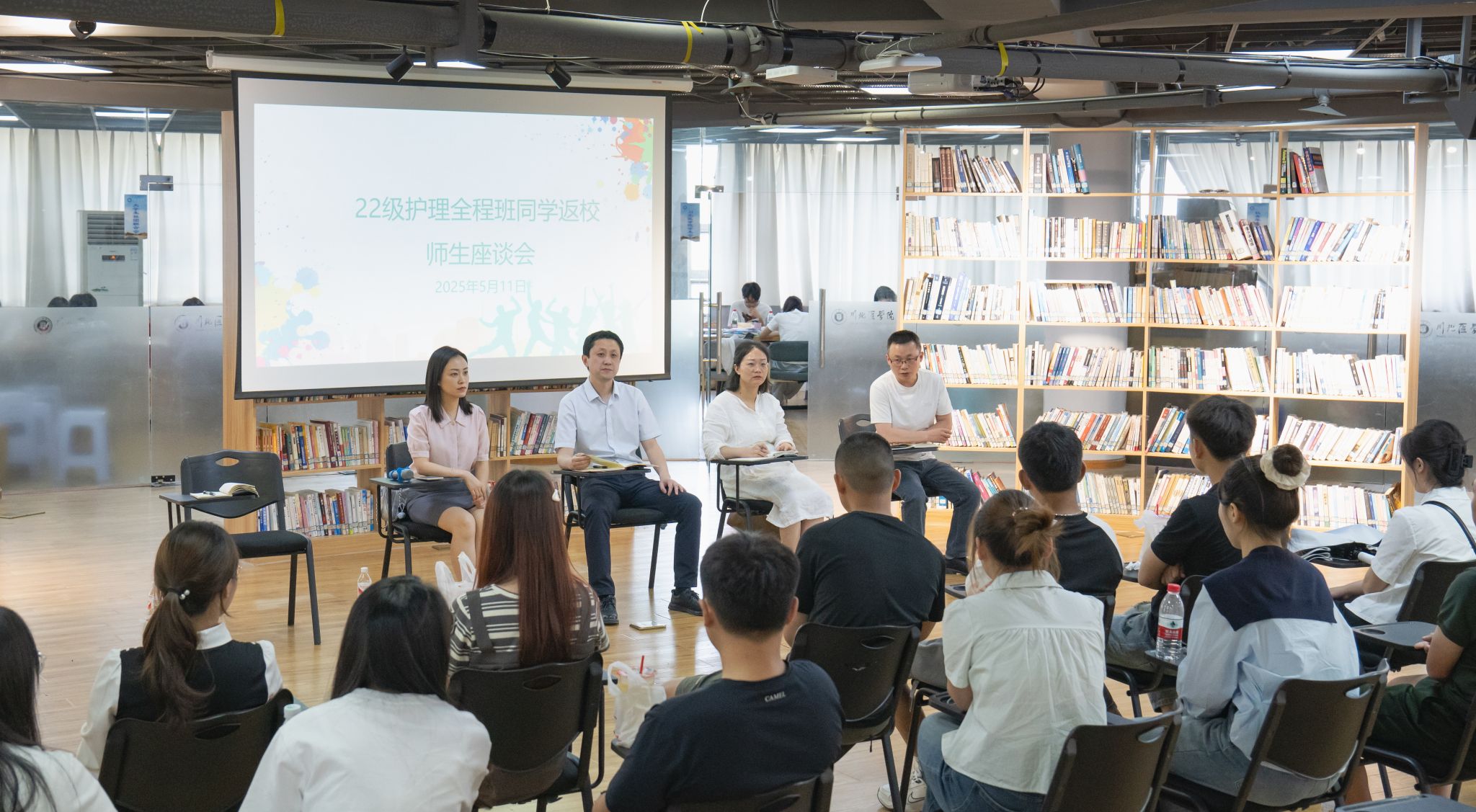 5月11日上午,全程班学生完成毕业图像采集后,在图信楼202教室开展了实习就业主题班会。辅导员老师针对学生关心的实习、考公、考研等就业问题,结合实际案例做了详细讲解。下午,在太阳城青年之家举行了师生座谈会,师生就全程班的学习、生活及个人职业生涯规划等方面,开展了深入交流,座谈会气氛热烈融洽。晚上,全体全程班学生在风雨操场参加学校庆祝第114个国际护士节文艺晚会,部分同学登台展示,沉浸式感受母校昂扬向上的浓烈文化氛围。