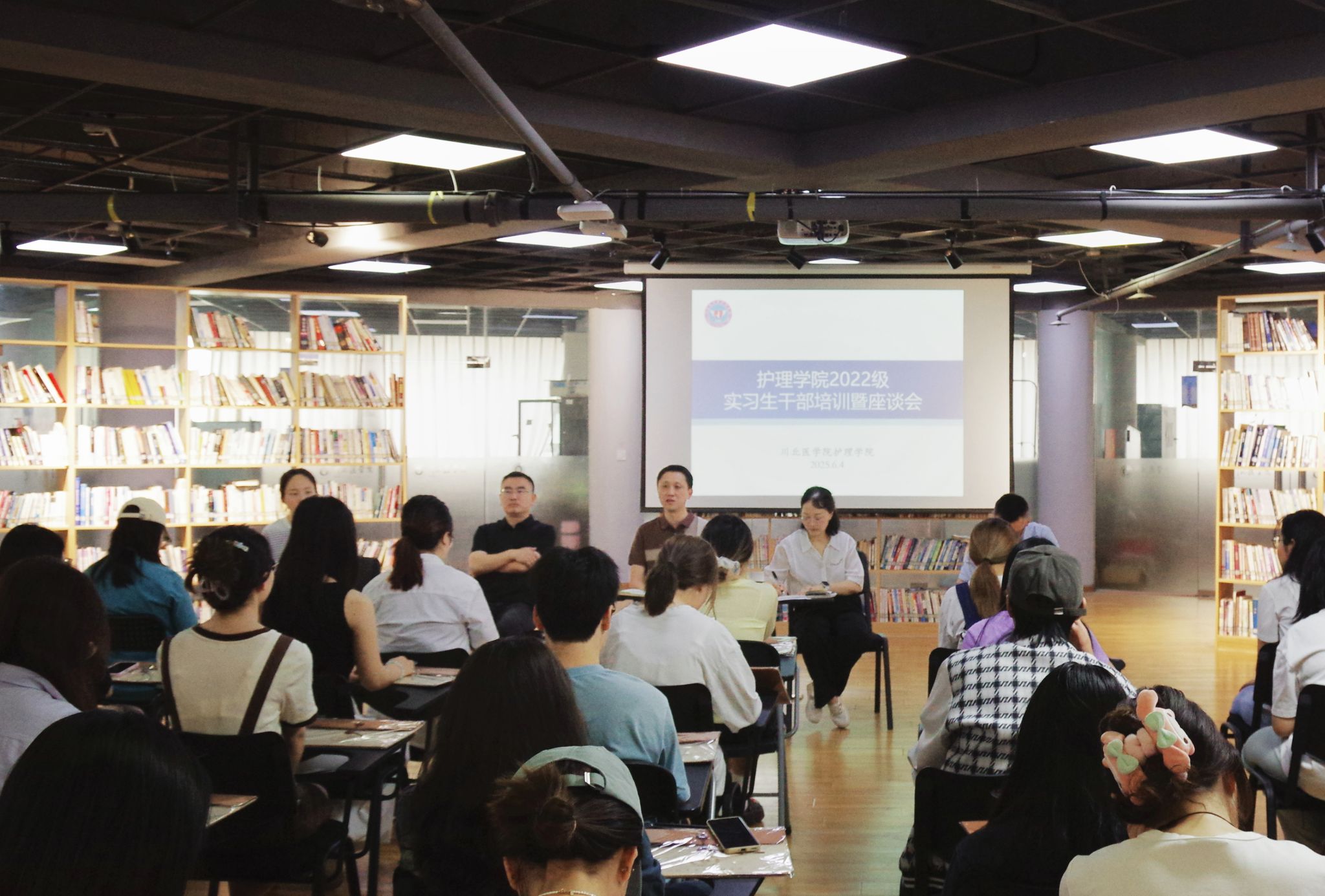 在实习生干部培训暨座谈会中,护理学院党委副书记谢鹏对实习生干部提出了期望与要求。他强调,实习生干部作为校院之间、师生之间沟通的桥梁,要以身作则,率先垂范,切实履行职责;要珍惜并把握实习期间的各种锻炼机会,积极应对困难和挑战,全面提升自身综合素质。同时,要求同学们要清醒认识就业形势,明确自身职业生涯规划,提前做好准备,切实增强核心竞争力,积极主动就业。教务处实践教学科科长邓鸿杰对实习期间的具体要求和重点事项进行了详细说明,并针对同学们提出的问题进行了耐心解答。