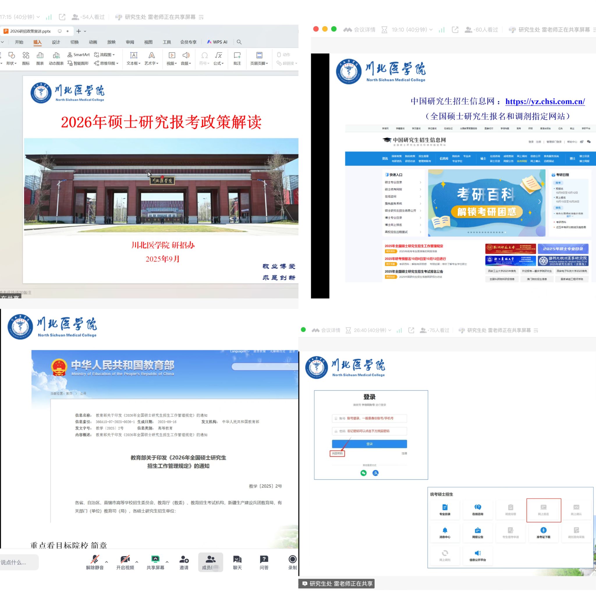 为持续推进学风建设,帮助2026届毕业生深入了解考研形势、精准把握政策动态、科学规划备考方向,9月25日晚,护理学院联合扬学辅导员工作室通过腾讯会议线上举办硕士研究生报考政策解读专题讲座。讲座特邀学校研究生工作部(处)雷波老师主讲,学院辅导员及毕业年级学生积极参与。