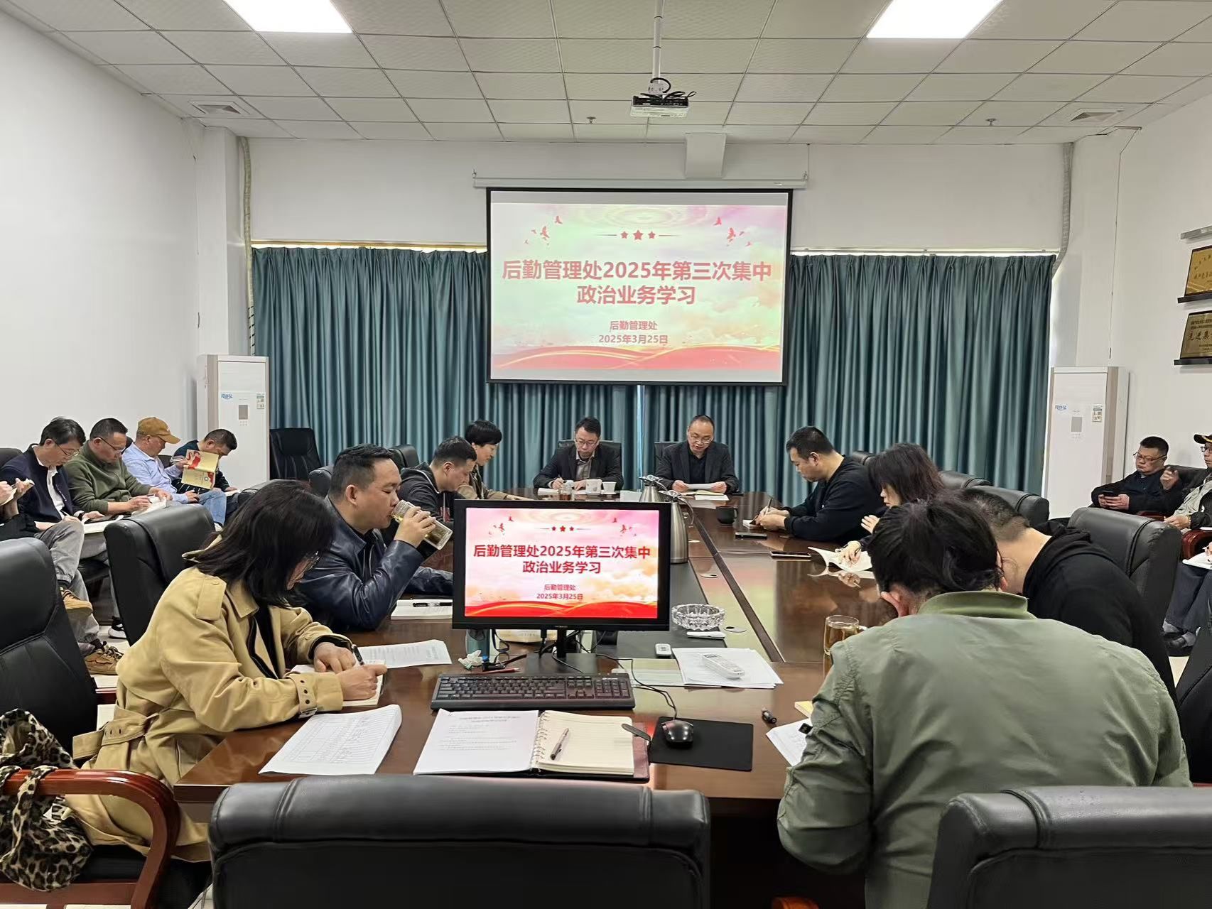 2025年3月25日下午,后勤管理处在部门会议室组织召开2025年第三次集中政治业务学习会,全体正式职工参加,会议由后勤管理处处长代成书主持。