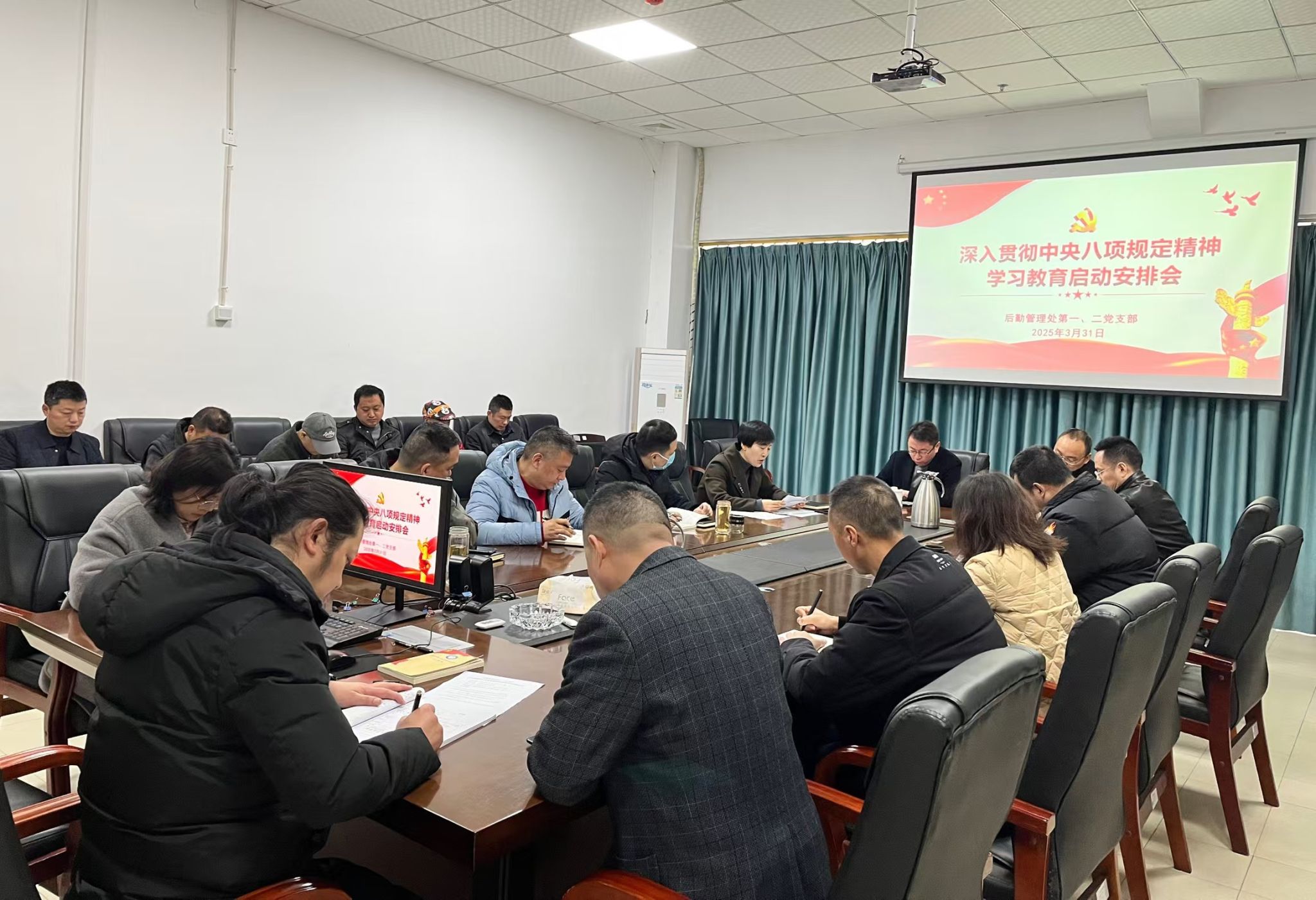 2025年3月31日上午,后勤管理处第一、二党支部在部门会议室联合召开深入贯彻中央八项规定精神学习教育启动安排会,会议由第二党支部书记张小英主持。