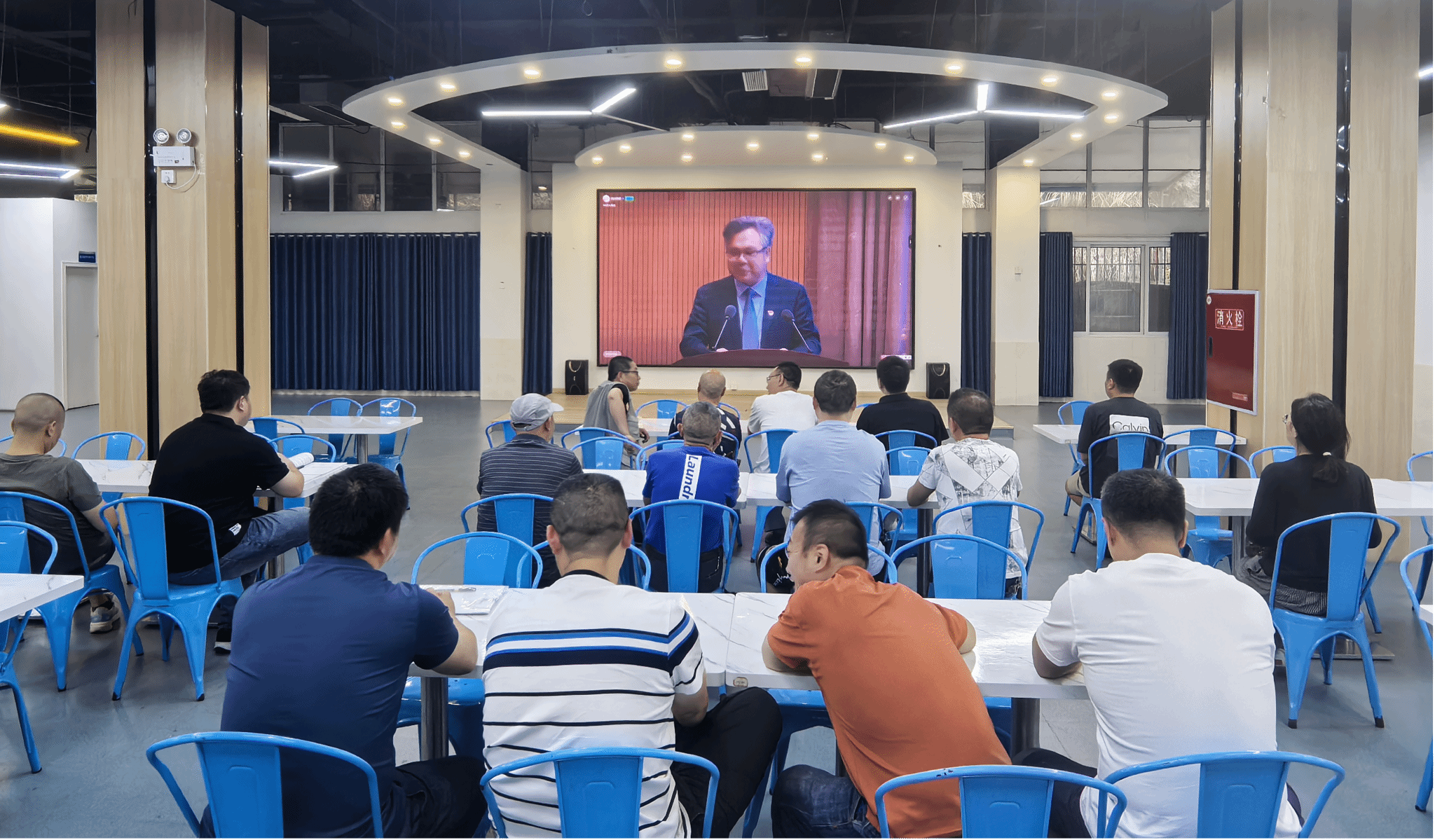 为深入学习贯彻党的二十届三中全会和省委十二届六次全会精神,坚持用党的初心使命感召党员,传承红色基因,学习先进典型,进一步增强党组织的凝聚力和战斗力,充分发挥党员的先锋模范作用,助力学校临江新区顺利搬迁启用,后勤管理处第一、二党支部于2025年5月30日在雅苑食堂一楼大屏幕前开展了“学习先进显担当,助力搬迁做贡献”主题党日活动。