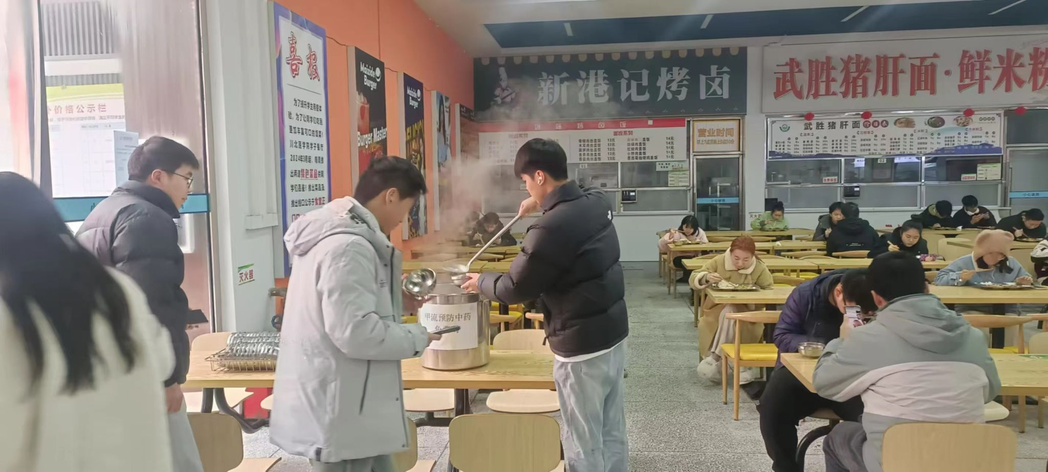 此次发放的汤药是特邀学校附属医院中医科的资深老专家精心配制的,具有增强免疫力、预防感冒的功效,自1月8日中午起,在学生食堂开启为期3天的免费发放活动,为同学们送上冬日里的温暖关怀。在发放现场,食堂工作人员一边热情地把一杯杯热气腾腾的汤剂递到同学的手中,一边耐心地向他们介绍中药汤剂的服用方法和注意事项。