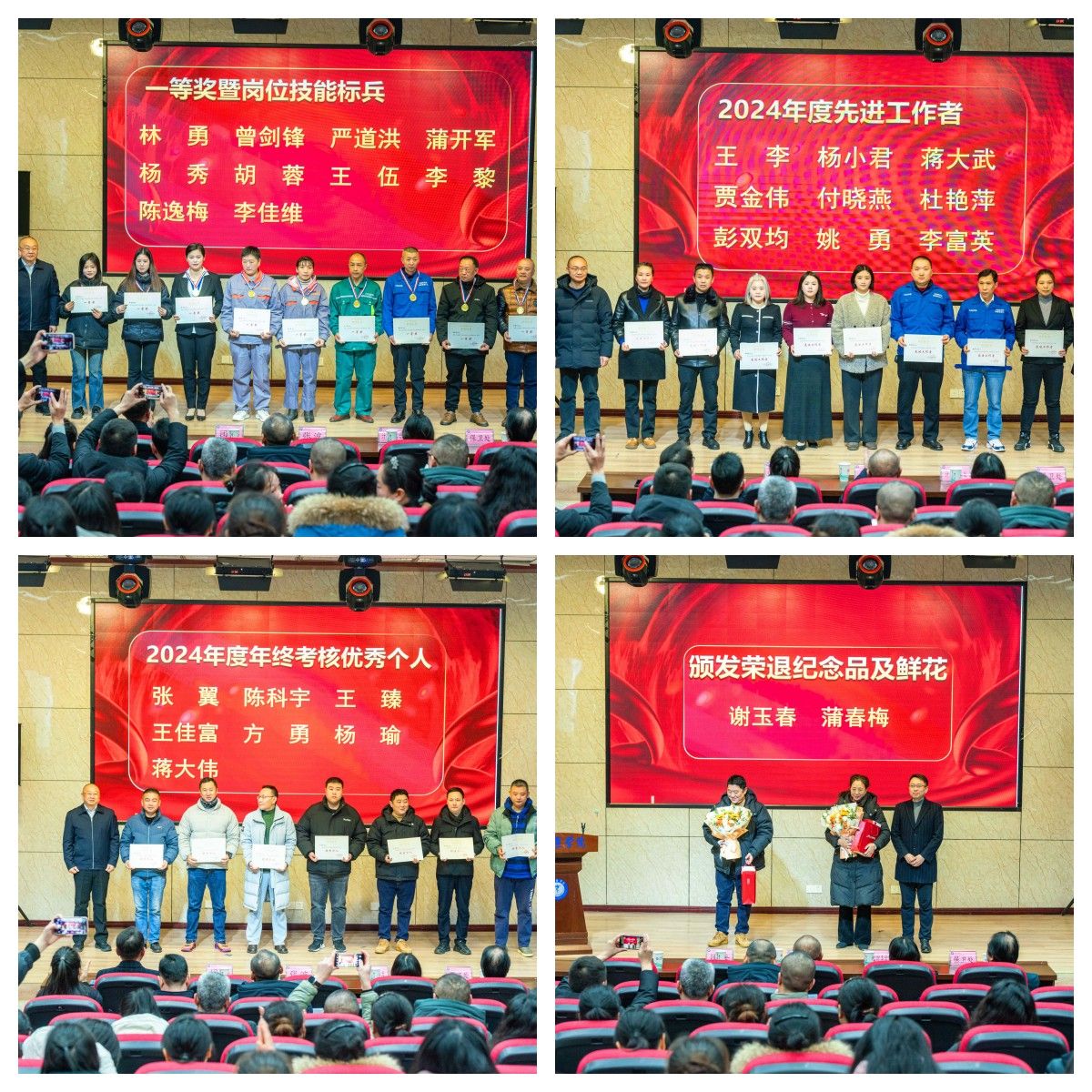 表彰大会上,先后对学校第二届后勤职工岗位技能大比武的获奖者、2024年度工作表现突出的外聘职工先进工作者以及2024年度学校考核优秀职工进行了表彰,2名获奖代表作了情真意切的交流发言,他们工作中认真负责的态度和服务中用心用情的做法感染全场。会上,还举行了2024年后勤退休职工荣退仪式,部门领导为2名退休职工赠送了鲜花和纪念品,并送上真诚的祝福。