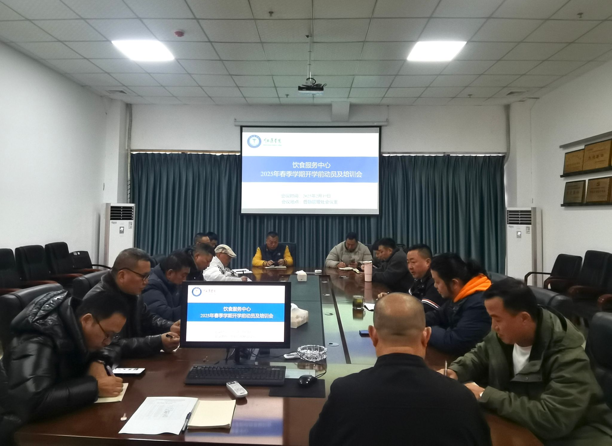 为做好餐饮服务保障工作,确保开学平稳有序,2月19日上午,饮食服务中心在后勤管理处三楼会议室召开了2025年春季学期开学前动员及培训会,饮食服务中心全体人员及各食堂经理参加会议。