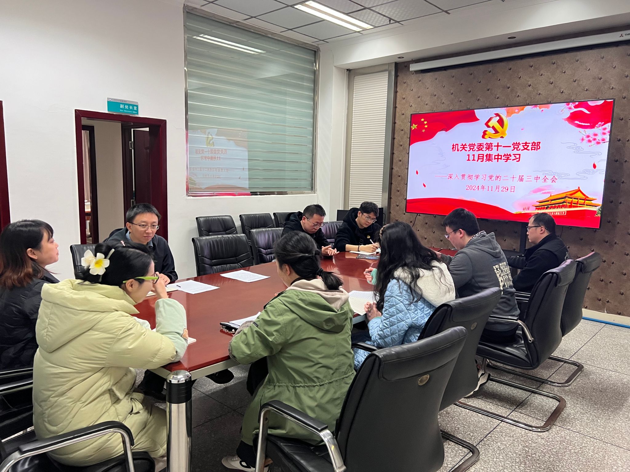 2024年11月29日下午,机关党委第十一支部全体党员在计划财务处会议室开展11月第二次集中学习。此次学习主题围绕党的二十届三中全会继续进行深入探讨。